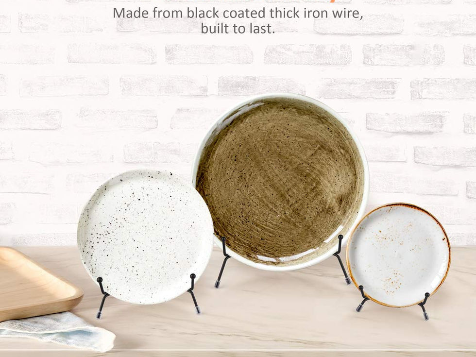 Versatile Sizes: This pack of 6 plate stands includes 3 sizes, each size has 2 pieces, ensuring that they will fit a variety of items. The 4 inch stand is ideal for items between 3"-5", the 6 inch stand suits items between 6"-8", and the 8 inch stand accommodates items between 9"-12" in height or diameter. High-Quality Materials: Constructed from wrought iron and finished with a matte black coat, these plate display stands are both durable and elegant. They can hold a range of items, including plates, photos, books, artwork, and more, making them perfect for home, office, or showroom use. Improved Stability: Our plate easel stands feature a screw on top to improve stability and adjust the width to fit your items. Plus, three anti-slip rubber covers on each leg to keep the holder from sliding and tipping over, prevent scraping and ensure your display items are safe and at the focal point. Space-Saving Design: When not in use, these plate holder display stands fold flat for easy storage and portability. The simple, stylish design fits in seamlessly with a variety of decor styles, making them a great addition to any space. And match your different home decor style perfectly. Satisfaction Guaranteed: 6 Packs of plate stands for display with a useful assortment of sizes. With our 18-month worry-free and friendly customer service, you can rest assured that you'll receive quality plate stands that perfectly match your needs. Get fast support if it is not what you want.