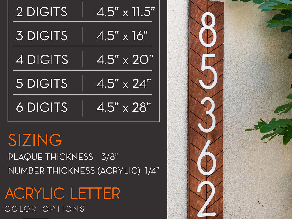 Modern Vertical House Number Sign for Outside, Custom Address Plaque