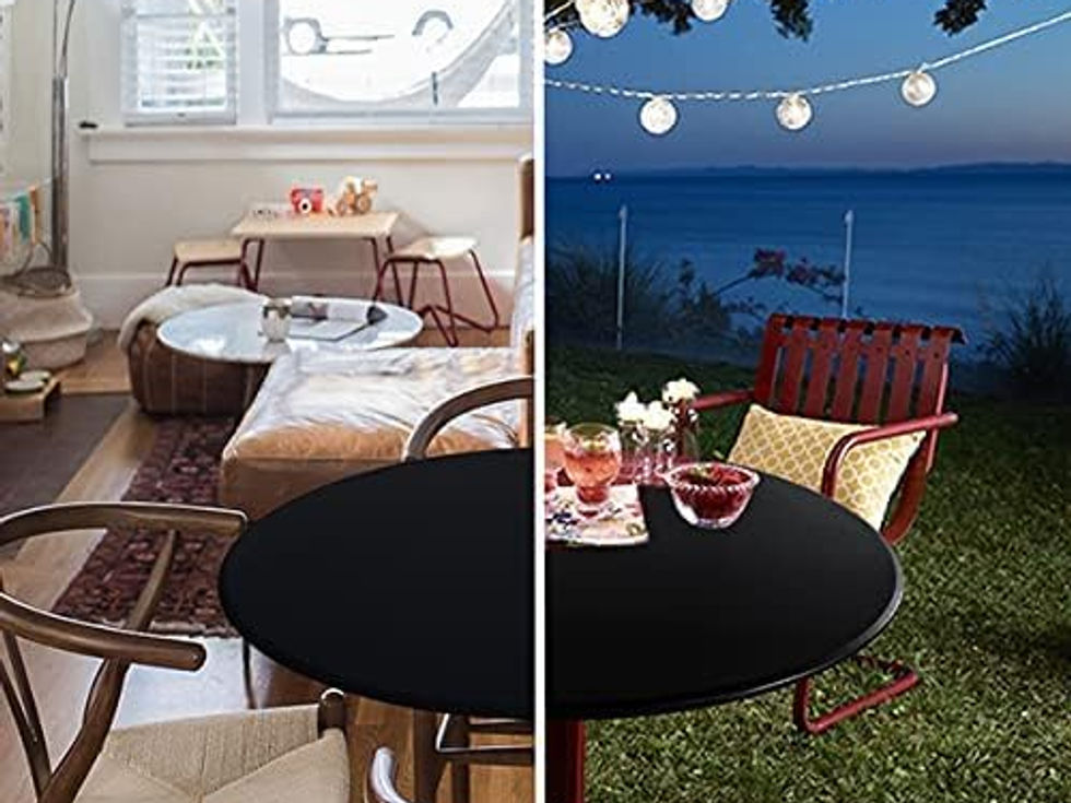 HIGH QUALITY MATERIAL: Obstal round fitted tablecloth are made from high quality extra stretchy and sturdy spandex fabric (90% polyester and 10% spandex). Each package includes 2 piece. REVERSIBLE &WATERPROOF: Our waterproof and oil proof table cover are reversible, can be used on both sides. One side is fabric with coating tech with high waterproof oil and stain resistance. The other side is uncoated, waterproof but not oil-resistant. The two sides are usually not the same color, offering a variety of possibilities for your desktop decor. CLASSIC TABLE COVER DIMENSION: This solid table covers suitable for standard round and rectangular table. Best fits round tables up to 32"-36" diameter (4 seats); 40"-44" diameter (6 seats); 45"-59" diameter (8 seats). Best fits rectangular tables 6ft x 30inch(6-8 seats); 8ft x 30inch(8-10 seats); you can reuse and double-sided use this tablecloth. No need clips to use this elastic tablecloth. Versatile Table Protector: This round table cover is perfect for everyday use, party, holidays, catering, cafes, special occasions, dinners, brunches, potlucks, BBQ's, buffets, baby showers, indoor and outdoor use, weddings and more. Easy to Care: Wipes clean with a damp cloth (recommended), Machine washable, No ironing. Wrinkle and color fade resistant tablecloth.