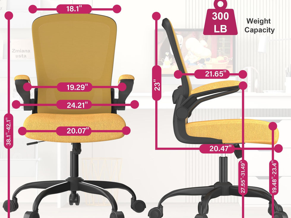 【ERGONOMIC DESIGN OFFICE CHAIR--Improve Your Posture】The design of the backrest fits the shape of the human spine, with the adjustable lumbar support, the office chair will give your back strong support. And the thick seat also can relieve the hip pressure to offer you comfort. Thick padded back & seat take this chair to the next level of comfort. Choose this office chair, choose comfort. 【ADJUSTABLE DESK CHAIR--More Comfort】This task chair has a 4 inch lifting range to meet the needs of people of different heights, it also has a reclining function of 90-135 °which allows you to relax yourselves after work. This mesh computer chair with flip-up armrest and seat height adjustable means you can find the perfect position to ensure you a pain-free day for long hour sitting. 【HIGH QUALITY MATERIAL--Work is Easier】Certified by BIFMA and SGS. Mimoglad Office Chairs have Soft High-density form Seat, which is covered with durable breathable mesh fabric and has good elasticity and difficult to deform to keep comfort for longer hours. Height-adjustable GAS LIFT CHROMED, Heavy-duty base and nylon smooth-rolling casters for great stability and mobility to help promote a comfortable seated position, keeping you comfy after long hours of game or work at home. 【SPACE SAVING】The simple style of the mesh chair adapts ideally to any office furniture, especially in living rooms, bedroom, kitchen, study and office, and can be used in a variety of ways, you can flip the arms up and put it under the desk for saving space. 【WORRY FREE & Perfect Gift Idea】360 degree swivel, made of heavy-duty noiseless casters, its explosion-proof base plate with 5-star base increase safety and stability. Maximum capacity up to 300LB. We Guarantee our customers 100% satisfaction with our premium desk chair! If you’re not satisfied with this executive chair, just email us and get a solution WITH NO EXCUSE!