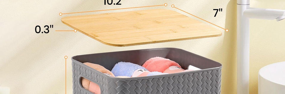 [PREMIUM MATERIALS & PERFECT SIZE] These stackable storage bins are made of quality PP5 plastic and natural premium bamboo, BPA FREE, enduring & tough. Perfect size for storage:10.2L x 7W x 6.5H inch. This plastic storage bins are 6.5 inches in depth which helps you organize and store more items for your storage needs [STYLE MEETS PRACTICALITY] This pantry organization and storage baskets with stylish woven design and natural bamboo lid, it’ll blend in with any decor and is perfect for home decor. These cute storage bins can help you organize scattered items, like kitchen storage, toy organizers, Bath accessories, books and stationery organizers, car part tools & small parts [STACKABLE & BUILT-IN HANDLE DESIGN] This storage box with lid with unique stacking design not only realizes convenient storage, but also saves space and keeps things tidy. Portable Handle on side of the baskets for easy removal from shelves, convenient and safe [MULTI-PURPOSE STORAGE] These lidded organizing baskets are excellent for storage and practicality, great for storing a wide variety of household items, you can use it in closets, cabinets, shelves, classroom, living rooms, bedrooms, bathrooms, offices and garages etc [PERFECT STORAGE SOLUTION & SERVICE] Our storage baskets with lids are committed to solving the problem of household clutter storage,giving you a safe and neat environment. If the storage box you received was damaged or not satisfied, please contact us now, we will be the first to offer a satisfactory solution