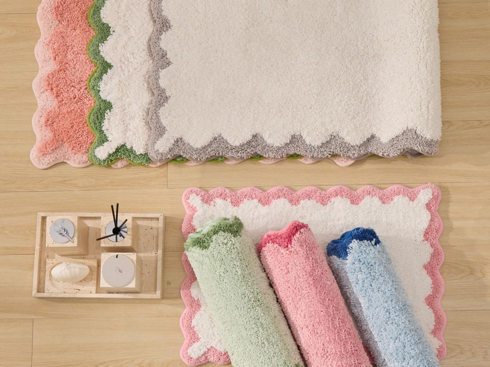 Cute Scalloped Bath Mat: Aesthetic and special scallop design is suitable for most bathroom decorating styles, it can be a seamless integration with your existing design elements. Sized at 20x32 inches, providing ample stepping space for your feet. Multiple colors available: pink, green, gray and black, adding vibrancy and fun to your bathroom. Soft Microfiber: ORTIGIA cute tufted bathroom rug is made of thick microfiber, the pile height of our scalloped bath mat boasts an increased thickness of 0.12 inches over standard mats to 0.9 inches, ensuring a softer and more delicate feel underfoot, pure luxury for your bare feet. Efficient Absorbent and Quick-dry: Made of quality dense plush, our cute bath mats can rapidly soaks up water, keeping your bathroom floor dry and tidy, preventing slips and falls. Experience unparalleled comfort with every step. TPR Non-slip Bath Rug: The underside of our irregular shaped soft microfiber bathroom mat is crafted from quality TPR material, preventing any unwanted movement and providing exceptional slip resistance. It significantly reduces the risk of slips and falls, enhancing bathroom safety. Machine Washable: Our bathroom rugs are sturdy enough to hold up multiple machine or hand washes. Innovative lock-edge design minimizes yarn shedding after washing, extending the mats' lifespan. Simply toss it in the washing machine to keep it fresh and clean, saving you time and energy. Note: Normal drying at low temperature.