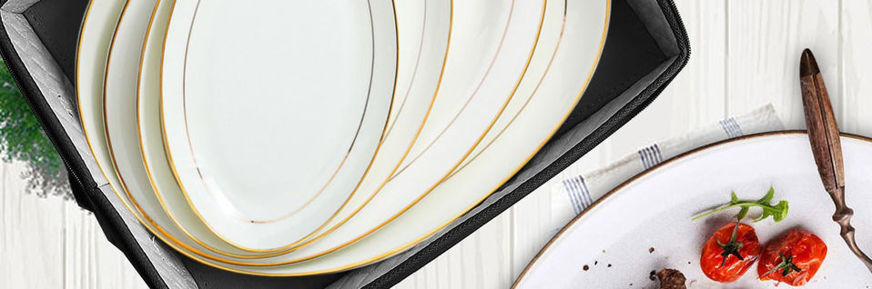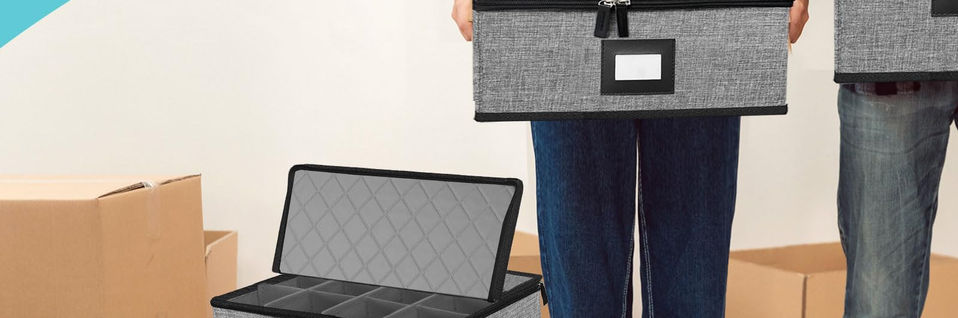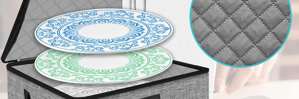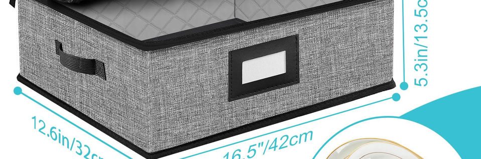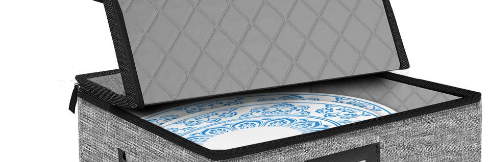 Quilted Platter Storage Case:The plate storage box has a cushioned cotton structure around the inside and on the top, which can effectively prevent your plates from bumping during transportation. High-quality and Durable Material:The China storage containers are composed of strong thick cardboard and durable 300D Oxford cloth.The top of the product can be stacked for more convenient storage.If the surface of the product is splashed with water, just wipe it dry with a towel. Product List:Contains 2 China Storage Cases,8 Felt Dividers.It is 16.5''L*12.5''W*5.4''H and 2 PACK can hold up to 8 plates. Reinforced Handles and Double Zippers:The stitching of the two handles is through the cardboard, which is more sturdy.The double zipper design makes opening and closing more convenient. Compared with the cover, it is more reliable and less prone to accidents during your moving. Classic Design and Convenient Label Window:The gray body and black edging make the storage containers for organizing very simple and exquisite. It includes a tab window to easily identify contents.
