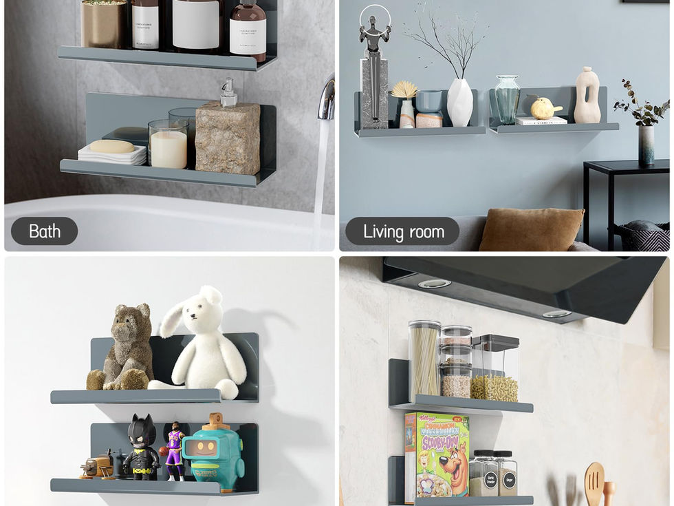 HIGH-QUALITY: PAVSTINE no drill shelves are made of acrylic so you don't have to worry about rust and peeling paint. The shelves are made of compacted material that has been reinforced to make them very strong and durable STRONG AND DURABLE: Strong adhesive tape installation. It can support up to 10 pounds of weight for a long time when you place it on smooth areas such as tiles, glass and smooth wooden boards MODERN ROOM DECOR: The shelf is gray in color and blends unobtrusively into all environments. Thanks to its minimalist design, it can be used in a variety of settings. You can use it in the kitchen, bathroom, studyroom, living room and any other wall with a smooth surface GREAT FOR DISPLAYS: The adhesive floating shelves measures H3.94x D3.94 x W11.81in and can be firmly fixed to the wall thanks to the 12 square inch of adhesive surface. With a depth of 3.9 in, it is ideal for holding everyday household items such as shower gel, shampoo and fragrance bottles EASY TO INSTALL: Please use on a clean and smooth wall. Please press firmly when attaching and let it sit for 12 hours before using