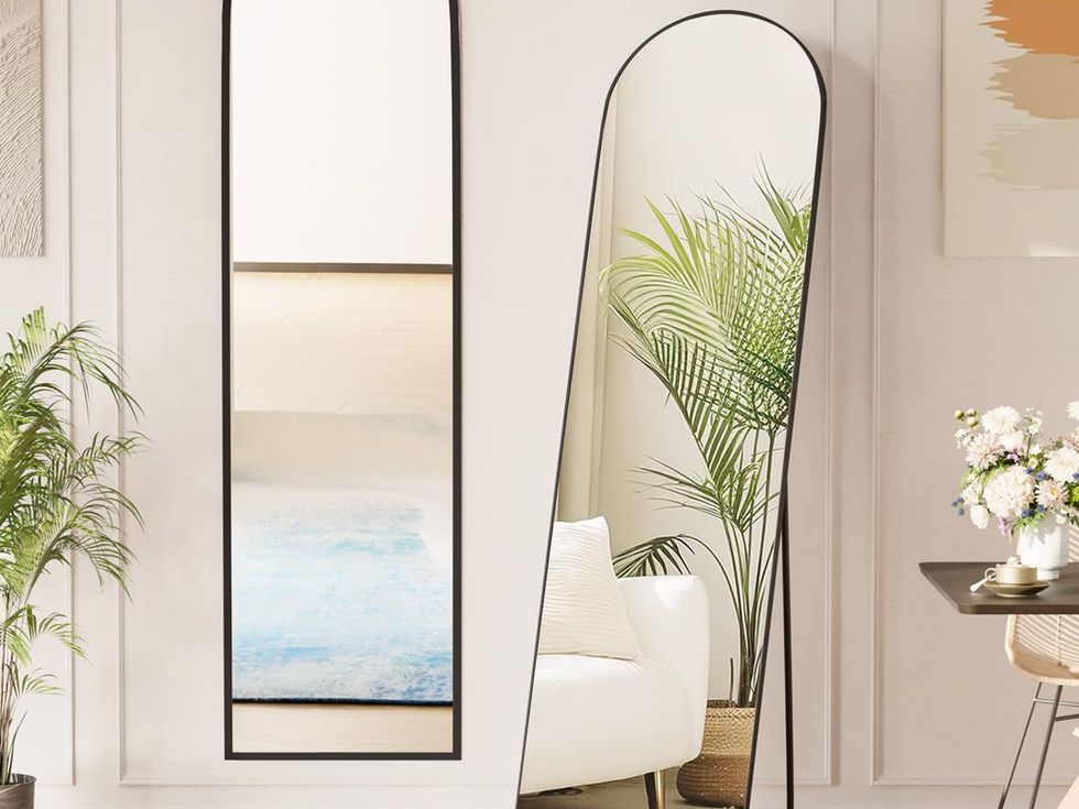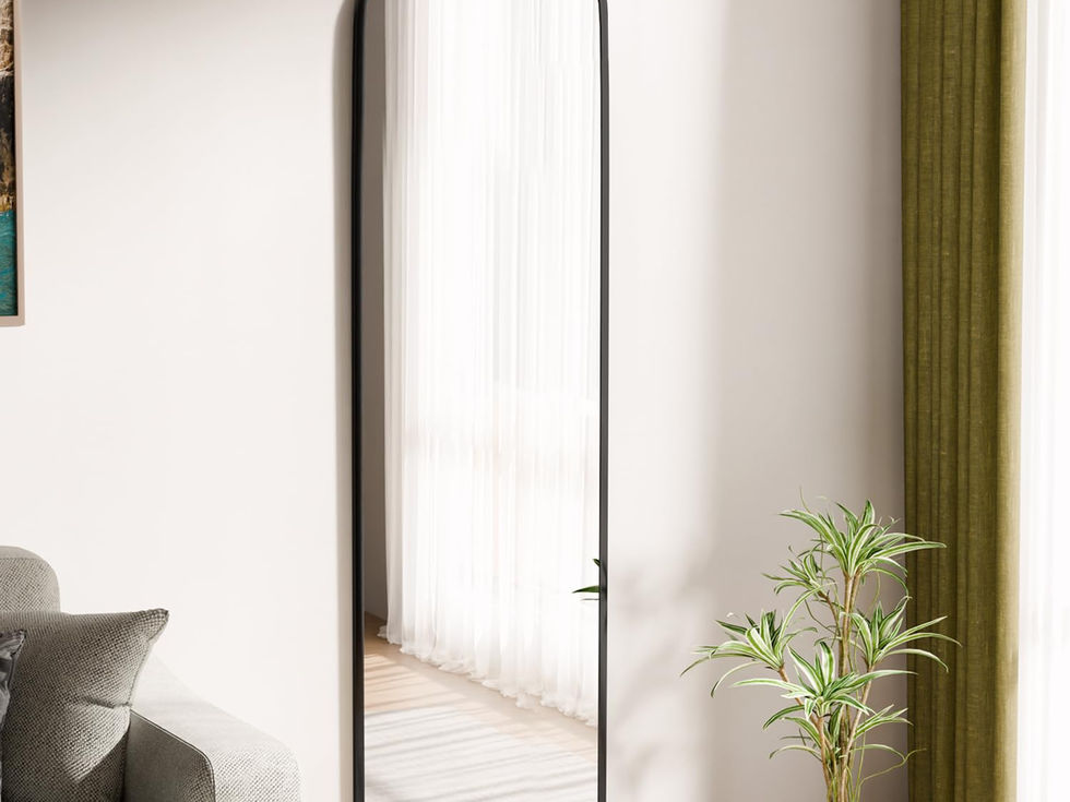 Glass Full Length Mirror: 59"x16" full length arched large body mirror, this standing mirror offers a full-body view, perfect for a complete outfit check. Its modern simple design effortlessly complements any space and bring you light, beauty, and confidence. HD Nano Glass: This arch full body floor mirror is made of HD-definition tall glass. Our wall large mirror provides exceptional clarity and a sharp reflection. The glass is made with the latest explosion-proof technology, the surface is reinforced with explosion-proof film, and the 3mm mirror thickness is thinner and lighter, more resistant to impact. Premium Aluminum Alloy Frame: The wall mirror full length is surrounded by anti-rust and colorfast aluminum alloy. Modern simple design with extremely narrow frame for all styles of home decoration. Versatile Placement Options: This full-body mirror offers three placement options: floor-standing, wall-mounted, or leaning against a wall. Ideal for bathrooms, bedrooms, entryways, living rooms, dorm, and home gyms.