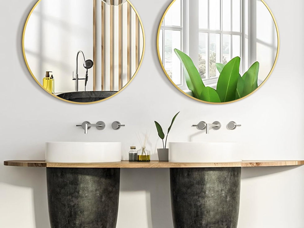 PUZONJIG 24" Round Gold Wall Mirror, Modern Shatterproof & Explosion