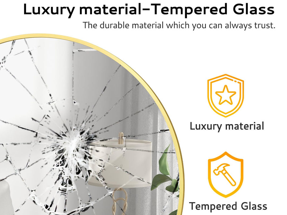 💎Shatterproof HD MIRROR: Bathroom top circular mirror with premium 6-layer shatterproof float glass provides a clear, undistorted reflection to the wall mounted circular mirror. The back is covered with explosion-proof film to prevent splashes when broken by external force. 💎PERFECT ARCHED DESIGN - The circular bathroom mirror adds a soft aesthetic to the space. With high quality metal materials ensure sturdiness and hang stability. No wobble. The mirror’s size is also a great ideal as decorative bathroom vanity mirror or accenting the entryway. 💎EXPERTLY CRAFTSMANSHIP: The modern bathroom mirror with premium aluminum alloy frame. By special anti-corrosion mirror treatment, anti-rust fadeless. Upgraded thin frame mirror, No warping or distortion. Robust and durable. Brushed craft protects its surface from wearing. 💎WIDE APPLICATIONS : The metal frame circular mirrors would work well with bathroom, entryway, salons. It’s blends into any room, gives a very romantic minimalist vibe. Vanity mirror is also a best gift to add light to space or a practical vanity mirror to illuminate your beauty. 💎100% SATISFACTION:We reinforced the packaging and passes all rigorous drop tests to ensure you receive the round black mantel mirror intact. If the wall mirror is damaged when it arrives, please don't hesitate to contact us.