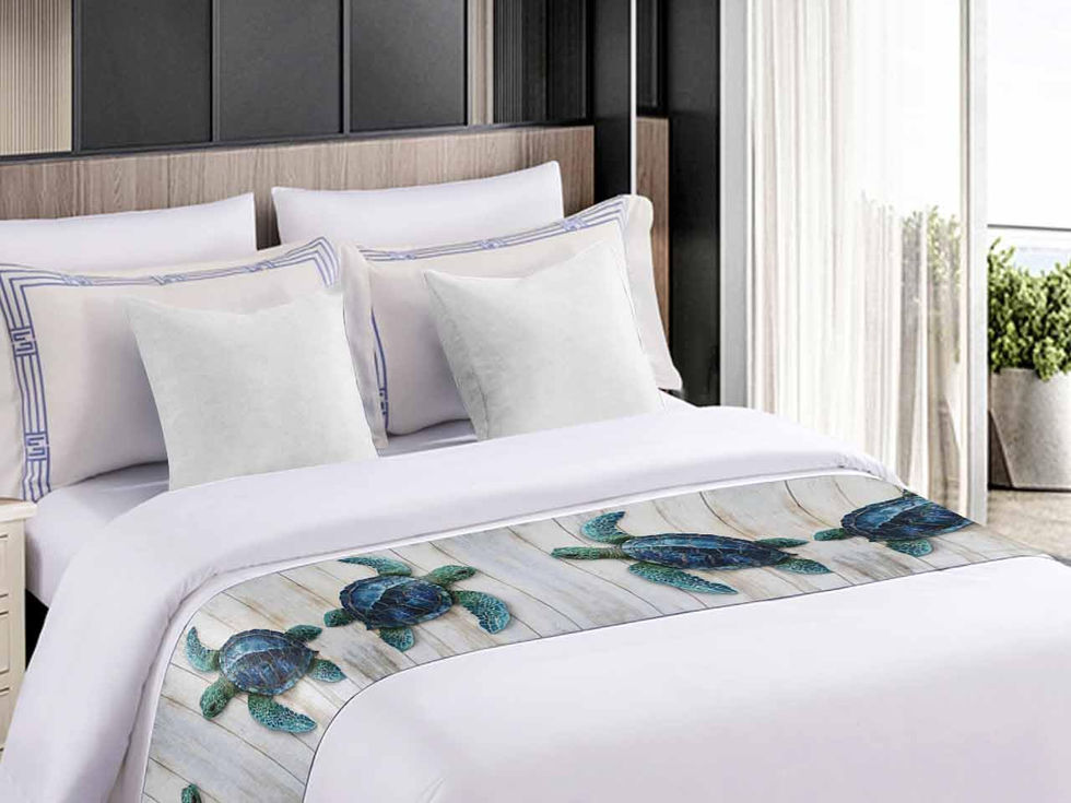 Queen Bed Runner Vintage Ocean Sea Turtle on Wood Grain Bedding