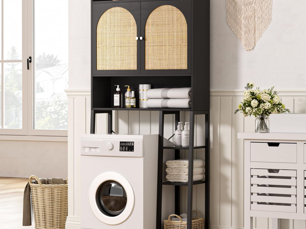 Elegant & Exquisite: Our rattan over the toilet storage features wood cabinet with arched handmade rattan double doors, standing on a black metal frame. Exquisite floor standing cabinet fully demonstrates the charm of handmade rattan art lines, wave wood grain and plant decoration complement each other Handmade Rattan: Handmade rattan doors are cleverly used on over toilet cabinet, carving out exquisite arched rattan double doors, while maintaining the natural wave texture of the material. In addition, wooden toilet shelf can be matched with green plant decorations or shell elements. These handmade elements together create a living space that is both ethnic and full of personality Large Storage Capacity: The additional storage space can store towels, bath products, decorations, etc. The shelf can be used to display decorations, adding a rich visual level to the bathroom. It is recommended to measure the size of the bathroom space and the distance between the toilet and the wall before choosing Reinforced Structure: Rattan above toilet storage cabinet is made of sturdy P2 board. The support frame selects X-type metal crossbars structure reinforcement, equipped with adjustable feet to ensure stability and prevent shaking. Anti-tip accessories can firmly fix the toilet organizer in place, Feature silent hinges and magnetic door stops to ensure years of use and easy cleaning Easy Assembly: Setting up the rattan over the toilet organizer and storage is a breeze with each panel labeled and a step-by-step instruction manual provided. Instant enjoy the extra storage and elegant charm. If you have any questions, contact us within 24 hours for prompt assistance