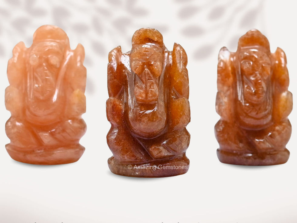 Red Aventurine Ganesha Idol - Crystal Ganesha Idol for Car Dashboard