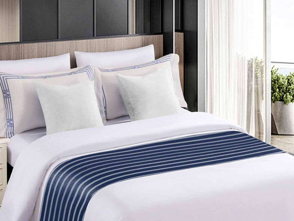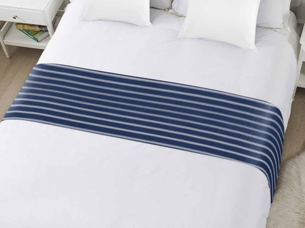 RisQiten Navy Blue Striped Bed Runners for Queen Size Bed, Decorative