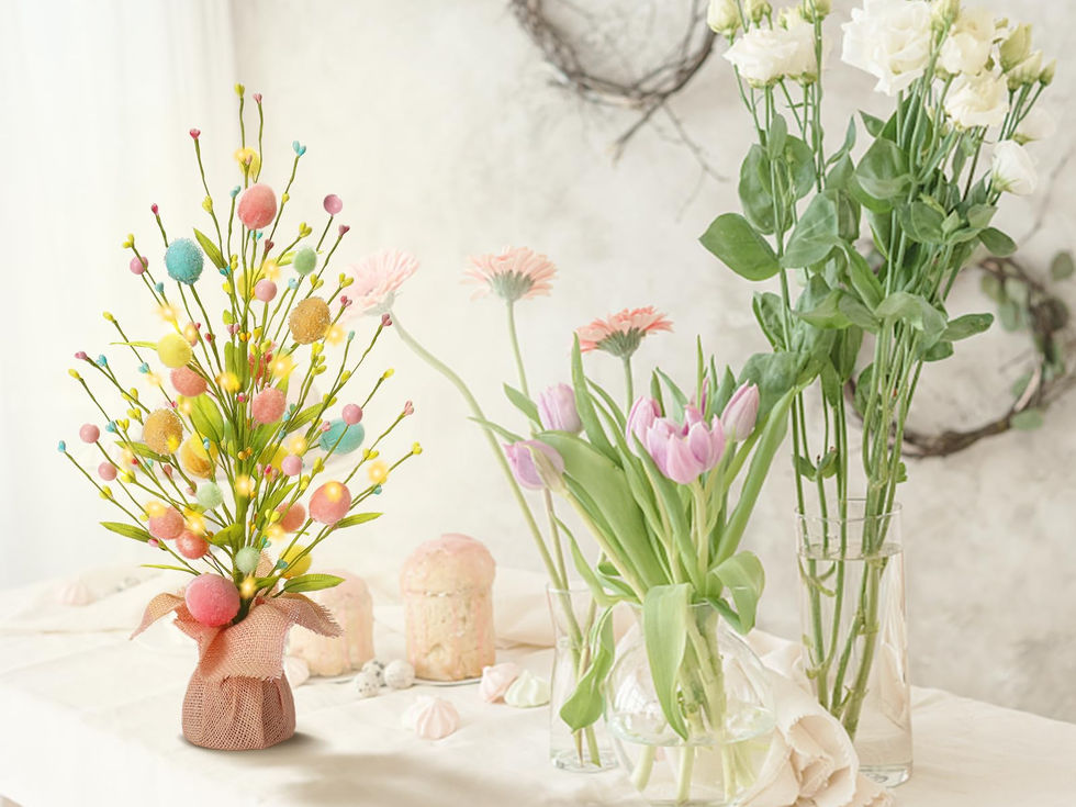 DESIFN CRAFT: This pre lit Easter Egg Tree is made of Led small light string, artificial eggs, flowers and green leaves. The exquisite and compact desktop egg tree is the perfect match to fill the festive atmosphere of Easter. SIZE: The size of Easter pre illuminated egg tree is 45.5cm / 18 inch. It can be decorations anywhere in the home, can save space for your holiday decor, Let you easily decorations your festival. BATTERY POWERED: The Pre lit small lamp string is powered by Battery (not included), with on/off switch,no cords wires or electrical outlet,can be placed any where, eliminating the trouble of wire. EASY TO USE: Easter egg trees are easy to use. The branch of the colored egg tree (bendable) is integrated with the base and is equipped with a small LED light string. You only need to expand the branch (bendable) part of the colored egg tree from bottom to top until it forms a tree shape, then wrap the LED light string and install the battery(not included). WIDELY USED: It is very suitable for Easter indoor and outdoor ornaments and Easter theme celebration. You can decorate the desktop, classroom, office, room.