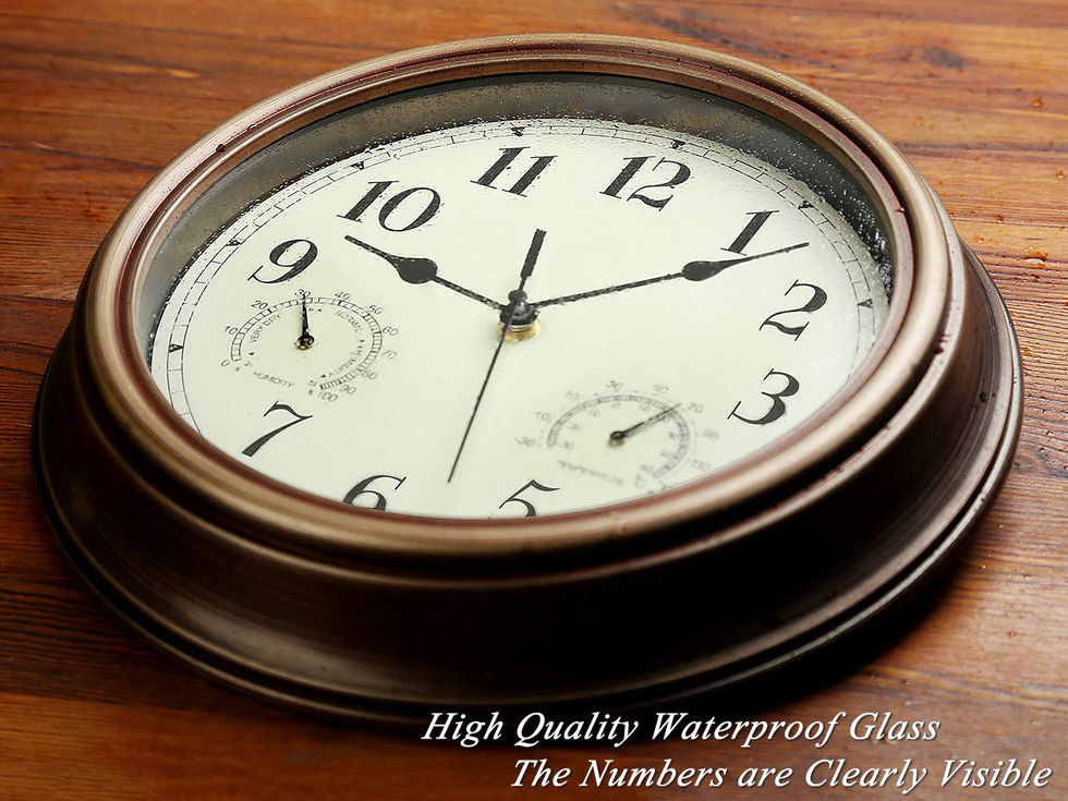Thermometer & Humidity Combo: Outdoor clock has built-in Analog hygrometer & thermometer combo. Automatically measures accurate Indoor/outdoor temperature degree from -40℉ to 140℉(-40℃ to 60℃), humidity readings from 0% to 100% RH. Waterproof:The Premium Rubber Gasket is around the Silent Quartz Mechanism in the back, that locked the cover fits over and sealed. The inside of glass doesn't steam up, because the clock face was be sealed as well. Silent Mechanism: non ticking, quiet sweep second hand ensure a good sleeping and work environment. clear display and easy to read time with large number inside,Perfect clock for hanging outdoors or indoors, dining rooms, living rooms, family rooms, bedrooms, kitchen,analog ambient dual temperature (℉&℃) Easy to Use:battery powered, require one AA zinc carbon battery(not included)only,(alkaline battery or rechargeable battery which may have influence on the life span of clock movement, as well as the accuracy of the time).Come with a wide slot in back for easy hanging.