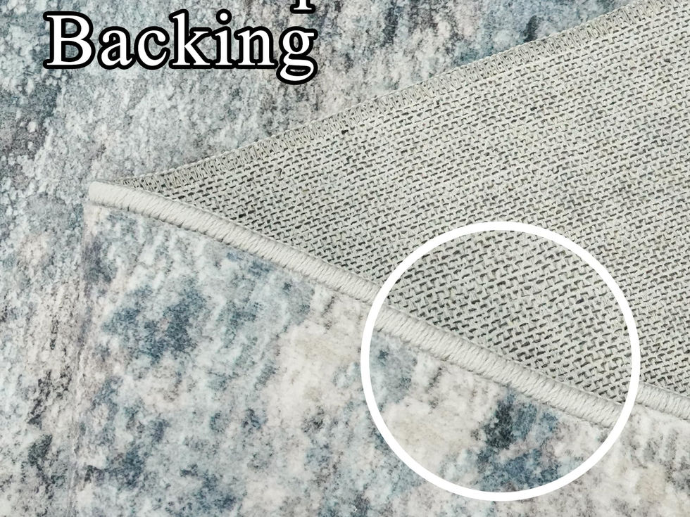 Ultra-soft Enjoyment - Extremely soft feel and premium quality appearance.The area rug 5x7 surface provides a soft texture and can soothe tired feet.These washable 5x7 area rugs are perfect for the bedroom living room and kitchen. Soft low pile 5x7 area rug will add warmth and comfort to your home!Place this 5x7 washable area rug rihgt by your bed so you can avoid the cold floor and have a super comfy feeling first step each morning. Cleaning Tips - Easy to care washable rug.For daily care,Simply clean with a hand-held vacuum (set on low )to removal debris on the 5x7 area rugs surface.Do not use a powerful vacuum cleaner as it may suck up the rug. For deep stains,spot clean or soap them up and hose them down with no issues then air the washable rugs 5x7 dry.Of course, you can also wash the large area rug thoroughly in the washing machine. It is better to wash the 5x7 stain resistant rug in cold water and never use bleach. Exquisite To Every Detail - Stays where you place the 5x7 area rug .The non slip area rugs 5x7 can improve grip and eliminate the need for constant readjustments.No longer have to worry about slipping or tripping on the soft washable area rug, which is especially important for families with children or the elderly.For greater slip resistance,we recommend using a rug pad.it will provide extra cushioning and prevent any possible slipping or sliding on your flooring. Aesthetic Room Decor - Infuse your space with timeless charm.this 5x7 washable rug features retro-modern patterns with thoughtfully incorporated distressing for a vintage aesthetic that will perfectly blend in with your home decor.Add a touch of warmth to your home with a luxurious vintage rug that reflects your impeccable taste, Enjoy the comfort and elegance the abstract blue rug provides whether in your living room or bedroom. Built to Last - Ultra-thin rugs are made with everyday use in mind.Premium recycled polyester for a lightweight yet durable finish.A dense low pile(0.14 inches)of the large washable area rug offers a cozy and comfortable surface, creating an unparalleled level of comfort and durability. the machine washable area rug 5x7 is suitable for living room, bedroom,dinning room, kitchen,home office.