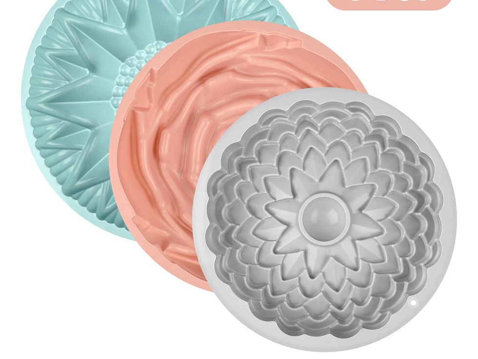 HIGH QUALITY: Silicone molds for food conform to european LFGB standard, BPA free, nonstick, repeatedly, quick cleanup, lightweight, very easy maintenance and storage, the perfect silicone cake pan for your kitchen needs PERFECT SIZE: Blue chrysanthemum mold measures 9.5 x 1.8 inches in size, the pink rose mold measures 9.5 x 3 inches in size, and the gray sunflower mold measures 10 x 2 inches in size, they work well to make healthy food WIDE HEAT RESISTANT RANGE: Silicone Jello molds can withstand temperatures ranging from -104 to 446 degrees Fahrenheit (-40 to 230 degrees Celsius), are safe used in oven, microwave, refrigerator and dishwasher MULTIPURPOSE: You can easy create delicious food at home or party, share the tasty homemade desserts. Flower molds silicone perfect for baking birthday cake, daily bread, jelly, flan tart, pie, desserts, and more TIPS: 1. For a Better baking experience, suggestion lightly spray your pan with a baking spray before each use. This makes removing your baked item a breeze! 2. Place your pans on a cookie sheet before filling them. It makes placing them in the oven very easy. 3. Let pans cool for five minutes before removing your baked item from them. Bottoms release easily with a few minutes of cooling. Hope you love these pans as much as I do