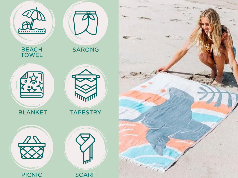 Beyond the Beach: The Sand Cloud Large Turkish Beach Towel is designed for spreading out on the sand, but its versatility doesn’t stop there! It works great as a yoga mat, cozy throw, picnic blanket, scarf, hair towel, wall hanging, and so much more. 36” x 68”. Design: Flynn Sea Lion Towel. Color: Multi. Fast-Drying & Sand-Resistant: Our super soft, absorbent towels dry 3x faster than old-school beach towels and shake off sand with ease. Lightweight: Sand Cloud towels roll up to fit in your bag and are not bulky like other beach towels. 100% Organic Turkish Cotton: This towel is made with luxurious Turkish organic cotton with a single jacquard weave for a super soft, ultra absorbent, and sand resistant beach towel you can take anywhere. Completed with twisted tassels for added style. Help Us #SaveTheFishies: We donate 10% of profits to save marine life. Marine conservation is a huge part of what our company stands for, and it’s at the core of everything we do.
