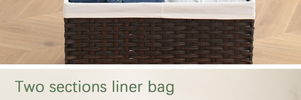Storage Baskets With Lids: The SETVSON Woven Storage Basket with Lid comes with separate open and closed covers, allowing wicker basket with lid to store items in partitions. Wicker storage basket with lid is a solution for keep a tidy living space Easy to Assemble: Wicker hamper with lid is made of PE rattan, basket with lid decorative storage is easy to assemble, if you decide to stop using woven basket with lid you can fold rattan basket with lid up for storing woven hamper more compactly. Removed and Washed Linings: Wicker baskets with lids comes with 2 removable lining bags, one of the padded bags has a divider seam and the other is without a divider; the liner of rattan storage box can be removed and washed to meet your storage needs Optimal Dimensions: Woven storage box measuring 25.2 x 15.4 x16.1 Inches, With a capacity of 27.8 Gallon (105 L), wicker storage baskets with lids is deep and can store blankets, clothes without taking up much floor space. Service Support: SETVSON is committed to providing you with high-quality rattan laundry basket with lid, we are honored to have you as our customer, if you have any questions after receiving the basket storage with lid, please contact us in time