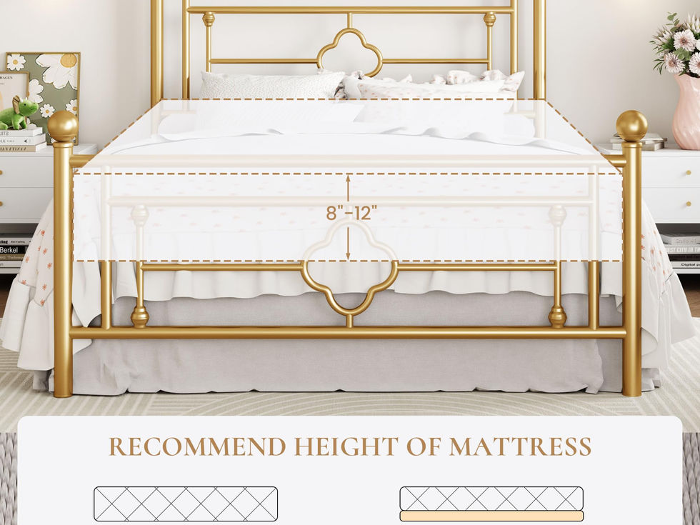 Sturdy and Durable: Crafted with heavy-duty metal support legs, our full platform bed frame ensures a solid foundation and long-lasting stability for a restful night’s sleep, making it a reliable choice for your bedroom or guest room Modern Design: With its sleek and minimalist design, our full bed frame with headboard and footboard adds a touch of elegance and sophistication to any bedroom decor. Whether a contemporary or classic style, this victorian frame seamlessly blends in with its surroundings Under Bed Storage Space: The ample 12.4'' underneath space offers a convenient solution for keeping your bedroom neat and organized while maximizing the available space for storing items such as clothing, shoes, bedding, or other belongings Noise-Free: The gold bed frame provides an EVA sponge to help cushion the contact between slats and reduce potential noise caused by friction. Greatly improve the quality of sleep by minimizing disturbances from creaking or rattling sounds Easy Assembly: Our metal bed frame comes with step-by-step instructions and all the necessary hardware for quick and hassle-free assembly