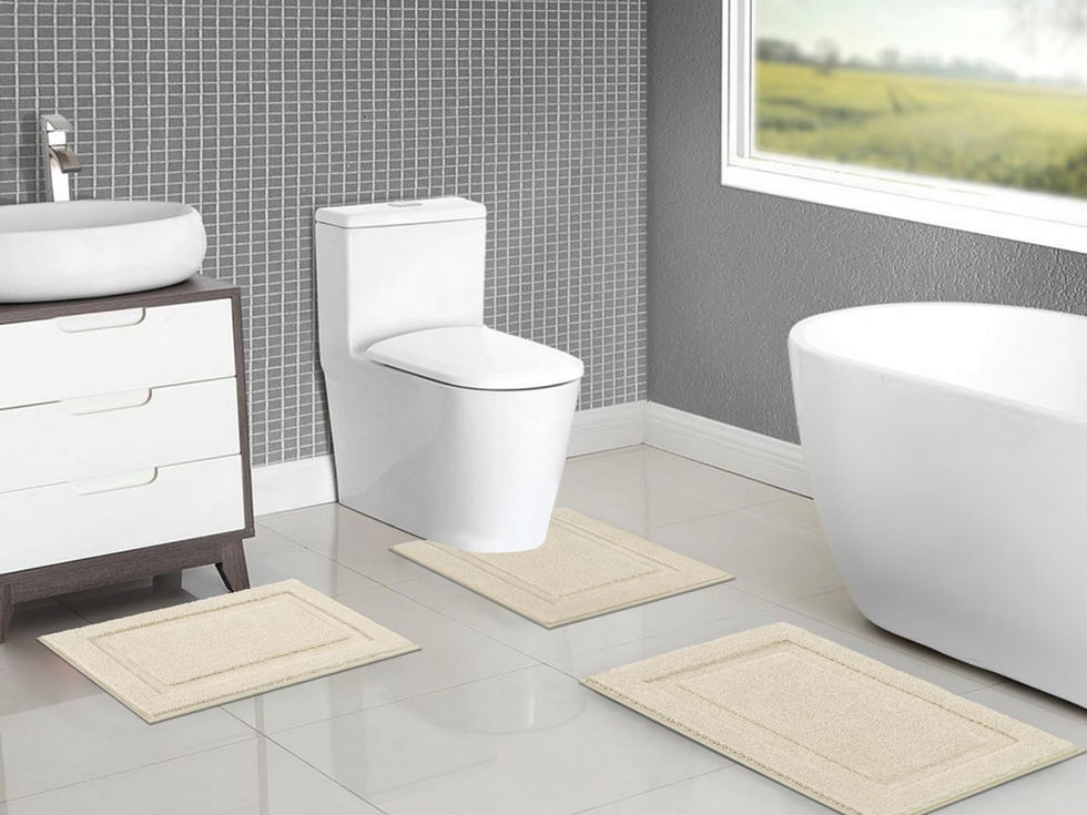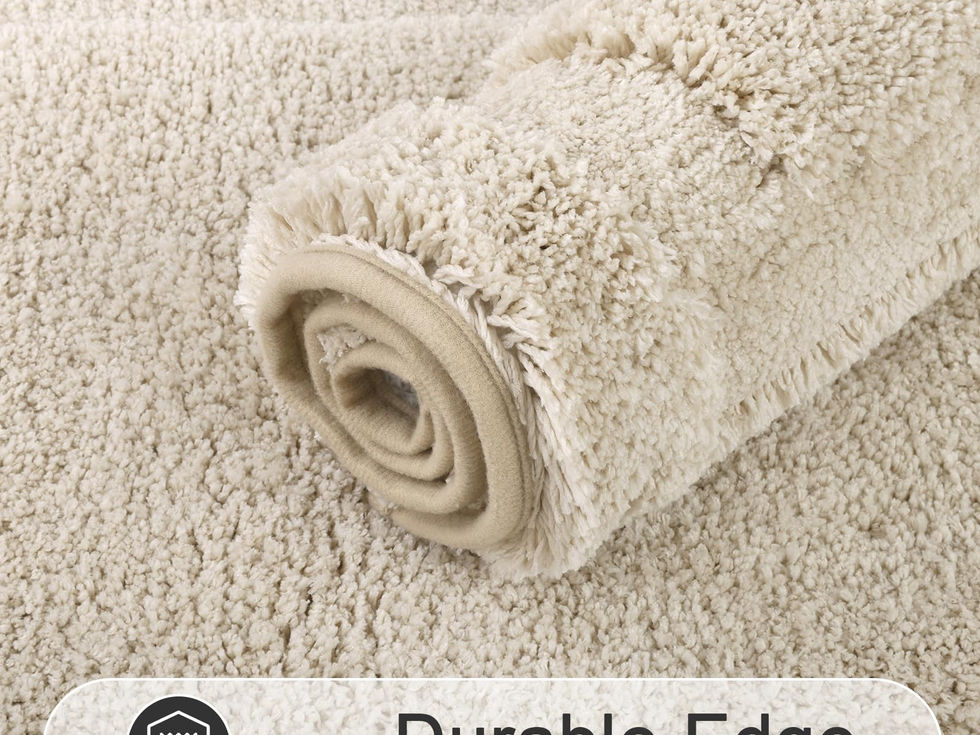 3 pieces bathroom runner rugs set includes 1 long bathroom runner rug 20"x47", 1 u-shape contoured rug 20"x24", 1 standard bathroom rug 20"x32". High quality microfiber material is very soft and comfortable on bare feet. Pile height is about 0.6 inch. The soft plush fibers are arranged neatly and tightly, no shedding during use Non slip bathroom rug's backing is made of textured TP rubber to prevent it from shifting and skidding. This thoughtful design not only keeps the bath rugs in a fixed position and not easy to move, but also ensures the safety of you and your family. High Water Absorbent Bathroom Toilet Rugs Set of 3. When you come out of the bathroom or shower, our ultra soft microfiber bath mat will quickly absorb the moisture from wet feet and lock moisture in the bathmat. It will keep your feet dry and the ground clean and avoid standing water on the floor. Multi Purpose Rugs Set. Our fluffy bathroom rugs sets are suitable for beside the bathtub, in front of the sink and vanity, around the toilet, and any place in your home where you want to keep the floor clean and new! Great solid colors and simple elegant design to match any themed bathroom, doorway, entryway, entrance, laundry room, kitchen, bedroom and so on. Great gift idea for all occasions, Thanksgiving, Christmas, Wedding, Fathers Day, Mothers Day, Valentines. Machine Washable. These microfiber bath rugs for bathroom are very easy to clean. Simply machine wash cold and tumble dry low. Air dry fully before use.