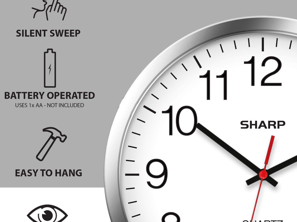 Sharp Wall Clock – Silver/Chrome, Silent Non Ticking 10 Inch Quality
