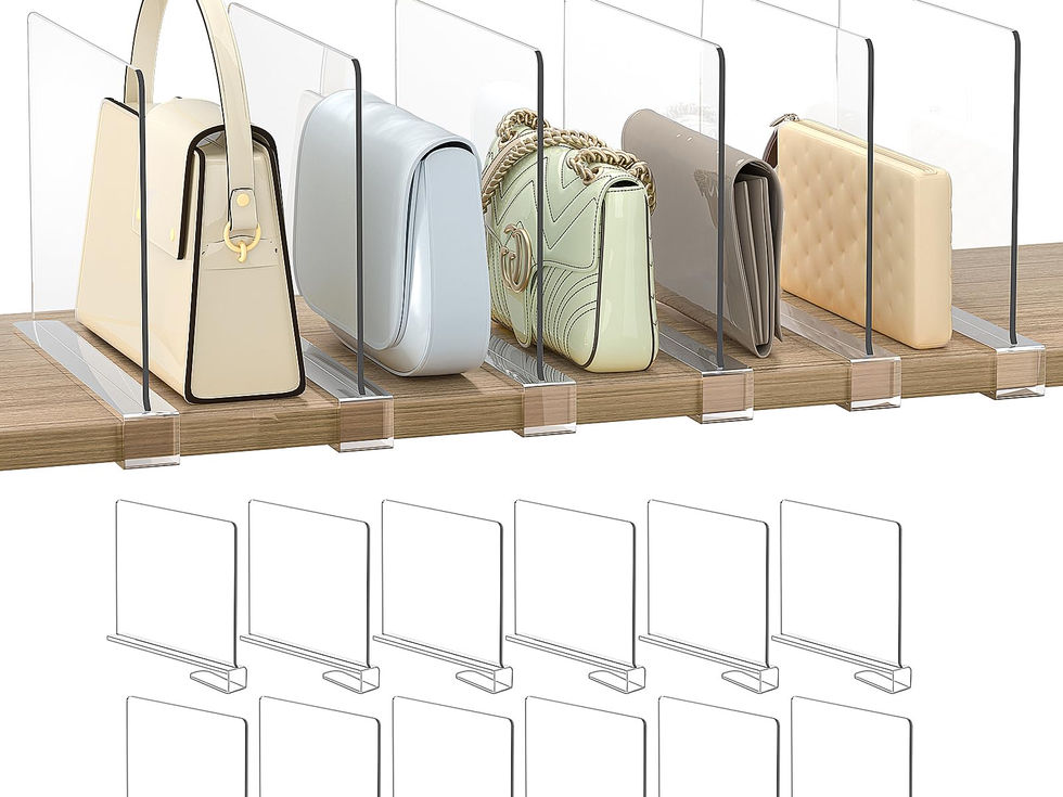 Create Organized Sections – Divide your shelves into neat zones, keeping bags, clothes, and items perfectly sorted and retrieved without disturbing the rest, perfect for closet organization Maximize Vertical Space – Keep purses upright and individually stored for easy access. Make the most of your storage area while preventing stacked items from tipping over Adjustable Placement – Easily reposition dividers on shelves to fit various storage needs and item types. No tool needed for installation Durable Acrylic Design – Clear and sleek, the minimalist design keeps your shelves looking tidy while allowing easy visibility of stored items Versatile Use – Ideal for closets, kitchen cabinets, bookshelves, and offices, catering to all your organization needs