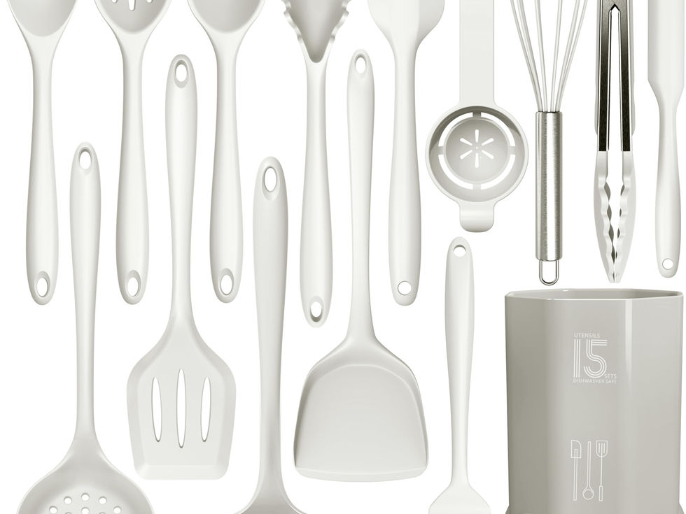 FOOD GRADE SAFE SILICONE.HEAT-RESISTANT, NON-MELTING, ODORLESS - Made of food-grade silicone, BPA-free, very safe to use in any type of food. The Silicone Cooking Utensils can withstand temperatures up to 446°F, Even if they are used in the high temperature environment of frying, you don't have to worry that it will melt. This silicone cooking utensils does not react with food or beverages, Will not retain odors or colors when you use it for stirring based food products THE SILICONE HANDLE IS ANTI-SCALDING.NONSTICK COOKWARE FRIENDLY.DISHWASHER SAFE - The cooking utensils One- piece stainless steel core to enhance durability and toughness to keep the spatulas from bending or deformation. Silicone head protect your pans, keep the cookware surface not scratched or dented. Extend the life of all your kitchen pans.They are scratch resistant.These 15 sets of kitchen utensils are very easy to clean. You don't have to worry about the dishwasher doing harm to them NO GAPS, NO FOOD IS CAPTURED, EASY TO CLEAN - Add stainless steel to each kitchenware to maintain an initial optimal memory state. Never warp. And full of flexibility. One-piece molding without any gaps to capture food,This is different from many kitchenware products. Make cleaning very easy. You completely leave the cleaning job to the dishwasher. Easily release our hands THE 15 PIECES OF KITCHEN UTENSILS ALMOST COVER THE NEEDS OF YOUR KITCHEN - we have carefully considered most of the scenes needed for kitchen use. Carefully selected such as: Deep Soup, Serving Spoon, Slotted Turner, Pasta Server, Flexible Basting Brush, Whisk, Tongs, Turner, Skimmer, Silicone Spatula. We pay great attention to quality and safety.BPA FREE. Food grade silicone GREAT GIFT IDEA. INTIMATE AFTER-SALES SERVICE - Such a complete kitchen utensil set is a great gift idea. We can foresee the happy and surprised expression of the friend or mother who received the gift. If you have any questions during the purchase or use, we will be happy to help you. Please contact us, we will respond quickly within 12 hours
