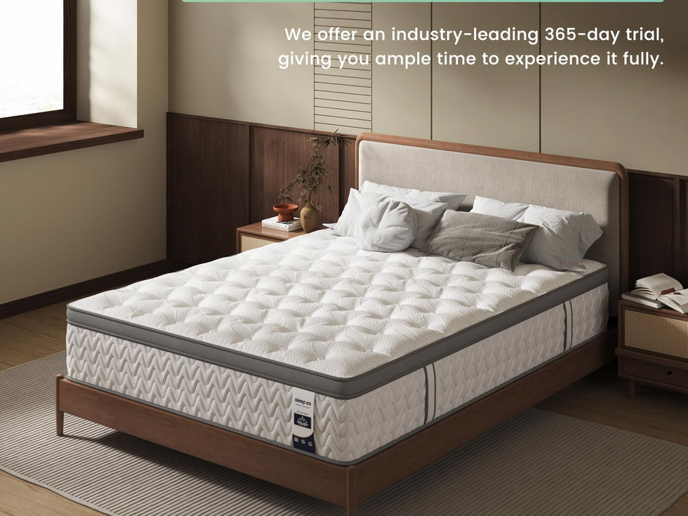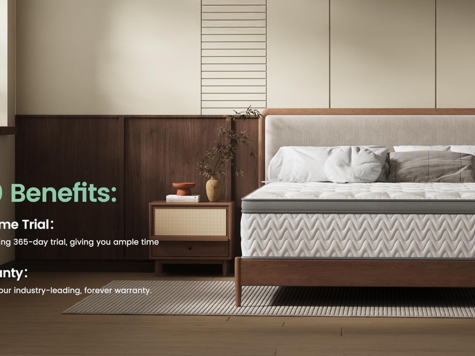 365-NIGHT HOME TRIAL - Worried our mattress might not meet your expectations? No need! We offer an industry-leading 365-day trial, giving you ample time to experience it fully. If you have questions, our dedicated customer support team is here to assist, try it risk-free for a full year. ENHANCED SHOULDER & LUMBAR SUPPORT: with a unique zoned design, providing targeted relief for the shoulders and lower back. it's perfect for those with discomfort in these areas. NO SMELL & FIBERGLASS FREE: Enjoy a hypoallergenic sleep environment, free from offensive odors. Rest easy knowing your mattress is safe and healthy for a peaceful night's sleep. A GREAT MATTRESS OPTION FOR UNDER $1000: From top to bottom, inside and out, we use only safe and top-tier materials for your comfort and health. this mattress offers premium comfort and support, making it an outstanding value for quality and restful sleep. FOREVER WARRANTY - Enjoy peace of mind with our industry-leading, lifetime warranty. As long as you own the mattress, it’s fully covered. We proudly stand behind our product quality, ensuring lasting comfort and support for years to come.