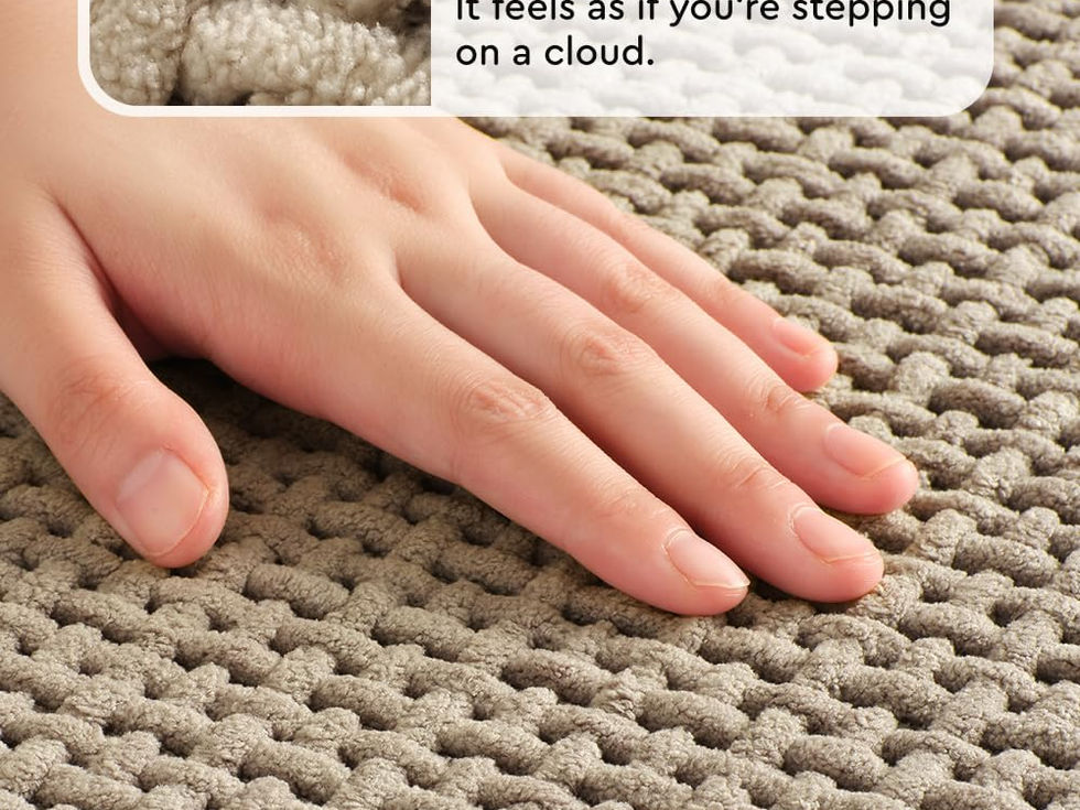 Super Absorbent & Quick Dry: Bath mats for bathroom absorb high flow of water with excellent absorption performance and keep dry quickly without bad smells. Quick dry bath mat meet bathing needs of multiple people in family and keeping bathroom floor dry and tidy at all times. Soft & Comfortable:Chenille bath mat envelops feet in luxuriously soft embrace, melts any fatigue or tension. Bathroom floor mats are meticulously woven and silky-smooth, offering comfort and coziness. Versatile and transformative bathmat elevates everyday bathroom experience with comfort and style. Anti-Slip & Leak-Proof:Rubber backed bathroom mats providing reliable anti slip performance in wet and slippery bathroom environments, ensuring use confidently. Bathroom mats quick dry keep the bathroom dry and tidy. Washable bathroom rugs avoid water leaking to the back to protect the floor. Durable & Washable: Bath mats have tightly woven structures allow wiped and vacuumed daily to remove dirt. Unlike traditional bathroom mats, tightly wrapped shower rugs for bathroom are machine washable, durable, and resistant to deformation or discoloration, ensuring a long service life. Multiuse & Fit under Door : Neutral bathroom rugs provide various fashionable colors and sizes to choose, making bath mats non slip convenient to match different bathroom decoration and needs.Thin and low-profile washable non slip shower rug allows seamlessly blend into the bathroom,kitchen mat, sink mat, without obstructing opening and closing of doors.