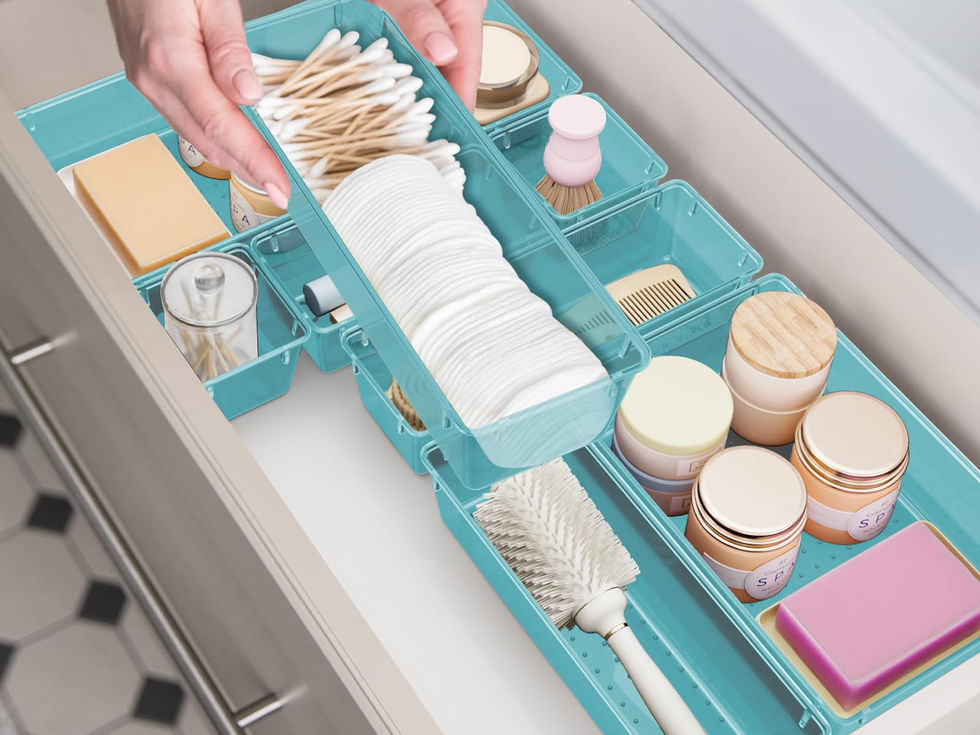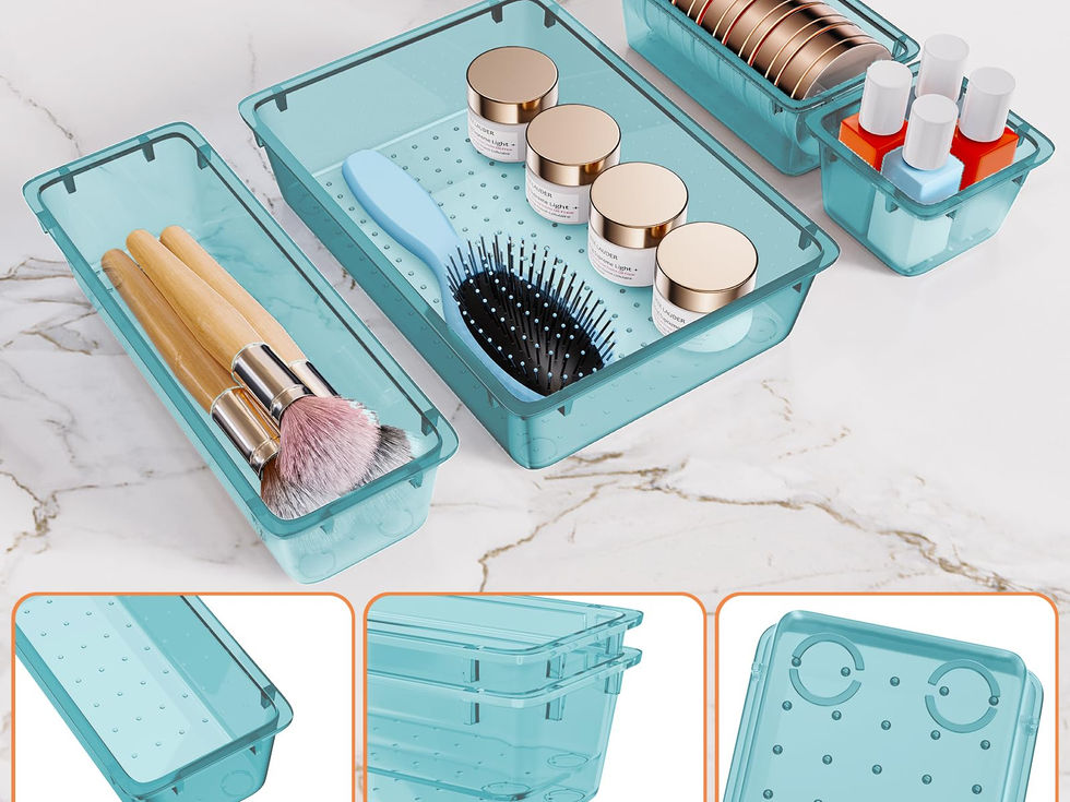 Various Storage Options: These multi-functional drawer divider trays are suitable for use at home or in the office; suitable for all kinds of drawers, such as vanity/bathroom/kitchen/office, for organizing cosmetics, jewelry, accessories, office supplies, utensils, etc. 4 Different Combinations of Sizes: The drawer organizer includes 25 storage bins of 4 different sizes; includes: 9 x 6 x 1.8 inches (3 pcs), 9 x 3x 1.8 inches (6 pcs), 6 x 3 x 1.8 inches (8 pcs), 3 x 3 x1.8 inches (8 pcs) Non-Slip and Durable: Prevents the tray from moving side to side when the drawer opens and closes. Stackable Storage: These organizers can be stacked on top of each other to increase storage space when in use, and can be easily stowed away when not in use, taking up less space. Easy cleaning: Our desk drawer organizers simply need to be wiped down with a damp cloth or rinsed with water to keep it clean for continued use.