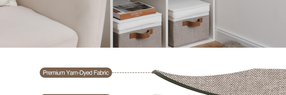 Premium Quality: The storage box is made of high quality natural fiber, which is odorless and moisture-proof, the sides and bottom of the box are made of sturdy, thick boards to ensure that a stable structure for long-term use. Handle with Ease: With the 2 PU sewn handles on both sides of the storage bins, you can easily carry items without tearing the handles. Removable Lid: The storage bins come with removable lids for dust protection, which not only keeps your items clean, but also saves space and looks neat when stacked. Multi-Scene Use: These storage boxes are perfect for bedrooms, wardrobes, living rooms, dorms, bathrooms, and can effectively store a variety of items. Available in different colors and sizes, beautiful and functional. Foldable Design: Simply unfold the box and place the base plate on the bottom. Fold down when not in use to help you optimise space.