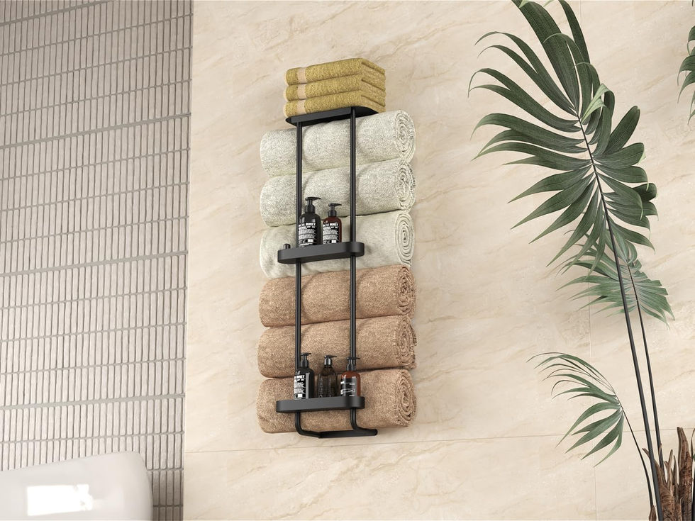 Towel Storage: Towel racks for bathroom wall makes full use of wall space to storage towel, and a top shelf for bathroom essentials. Space saving, ideal for small bathroom towel storage Shower Organizer Set: bathroom towel shelf with 2 pack shower caddy can help you better organize your bathroom necessities Sturdy: Bath towel storage is made of stainless steel, sturdy and durable Size: 11"L x 6"W x 36.4"H. You can easily fit 6 big rolled bath towels on the towel rack for small bathroom use! Ideal for use in apartments, dorm rooms, RV and campers Easy To Install: Complete with mounting hardware and instructions, easy to assemble. You can easily install the towel shelf for your bathroom next to the shower, over the toilet, etc