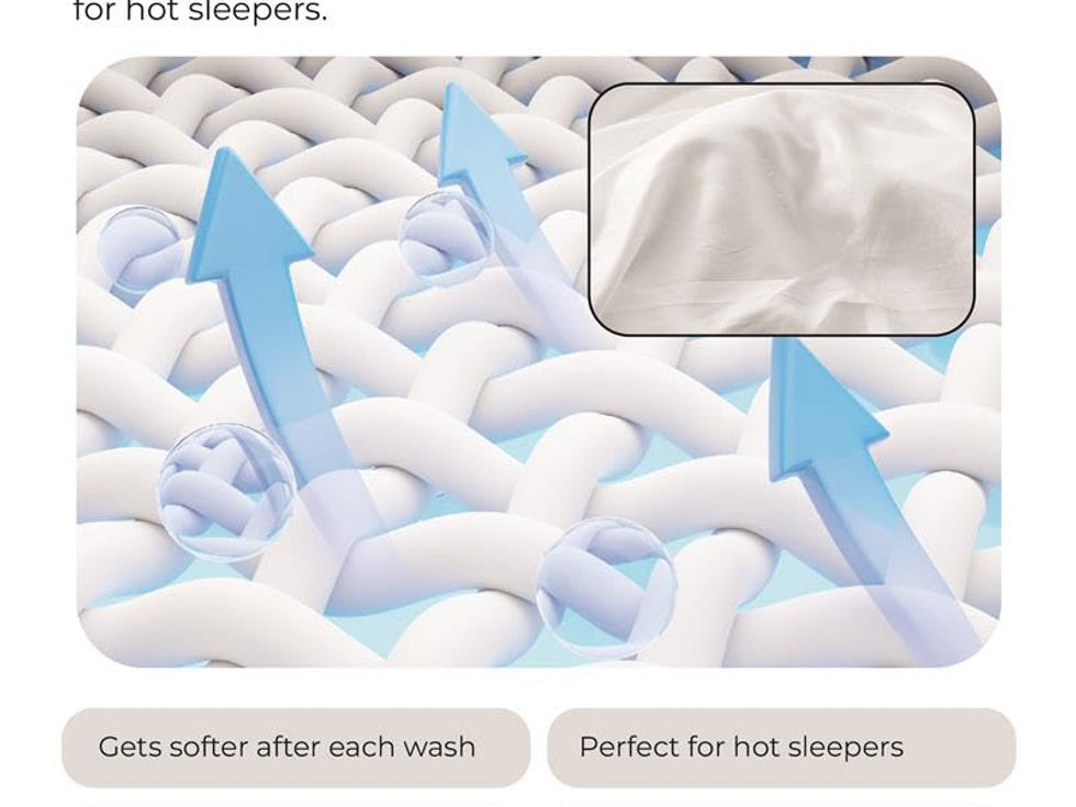 Luxury Meets Coziness: Woven from the finest 100% cotton fibers, our bedding sheets keep you cozy all night long. The special finishing process accentuates the luster and softness of the fabric, making them a perfect addition to any bedroom. Enhanced Comfort & Sleep: Featuring a classic percale weave, our cozy sheets and pillowcases are cool, crisp, and feel smooth against the skin so you never lose a wink of sleep. They soften after each wash, making them cozier day by day. Perfect for king beds. What’s in the Set: Our king bedsheet set includes 1 flat sheet (108 inches wide x 102 inches long), 1 fitted sheet (78 inches wide x 80 inches long), and 2 king size pillowcases (40 inches wide x 20 inches long) to best suit your requirements. Perfect Fit for Your Mattress: Our fitted sheet features patented True Grip fit technology with a 1-inch wide boxer elastic on the edges and ½-inch elastic on the drop, providing a snug fit for mattresses of varying depths. It also features a "Smart Head/Foot Tag" for easy identification of sides. Ideal for king bedding sets. Wash Care Instructions: Our cooling sheets, crafted with a percale weave, are known for their remarkable durability and exceptional comfort. They are conveniently machine washable, maintaining their color and growing softer with every wash. However, to keep wrinkles at bay, promptly remove the sheets and pillowcases from the dryer or iron them. Easy care bedding for busy lifestyles.