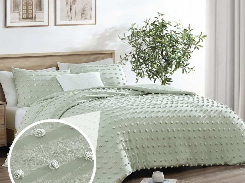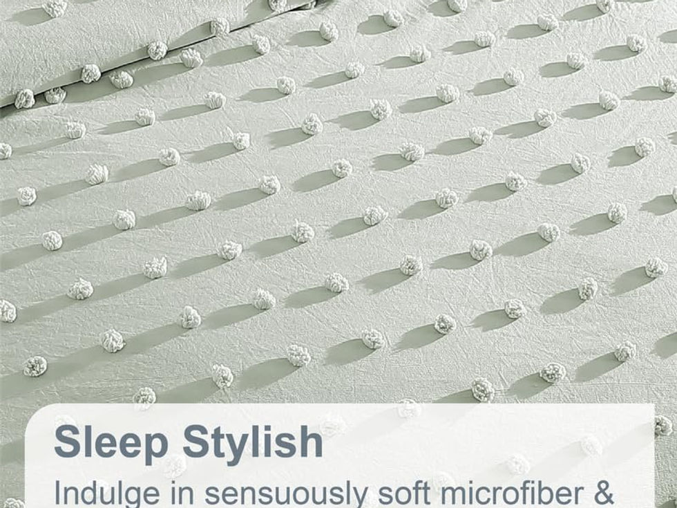 Swift Home King Sage Comforter Set - Decorative Tufted Pom Poms