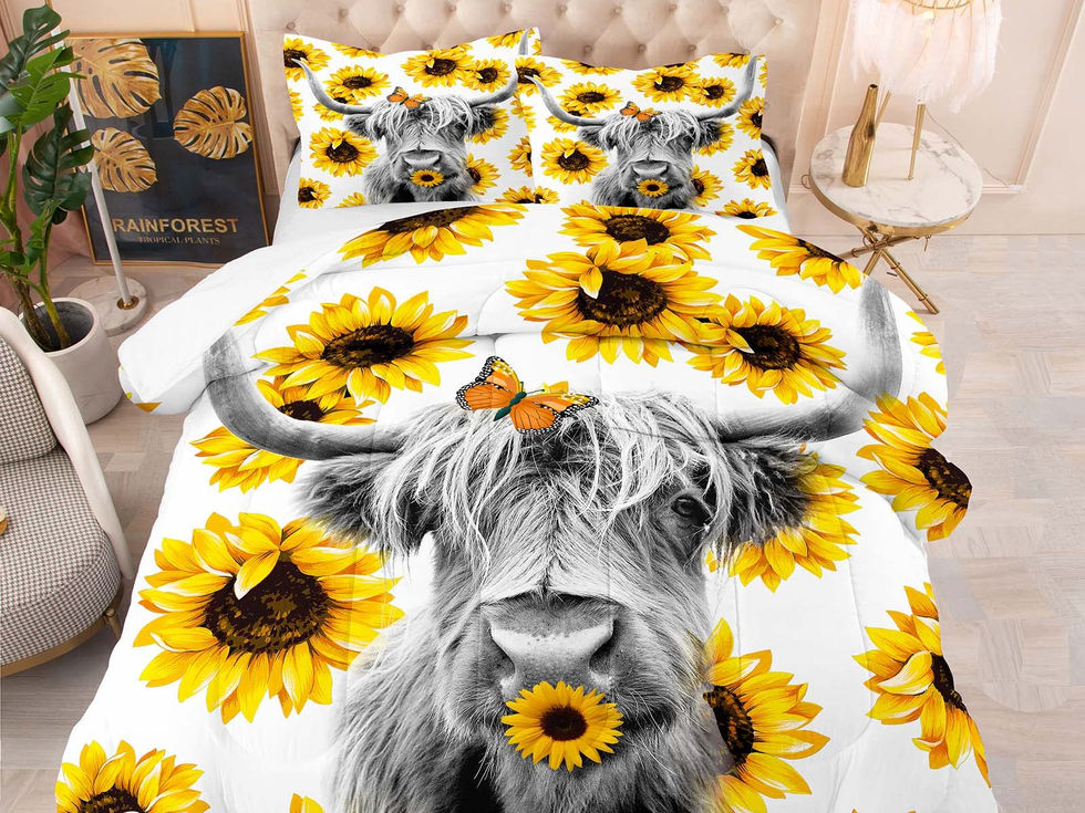 Tailor Shop Highland Cow Bedding Set Full Size ,Farmhouse Sunflower
