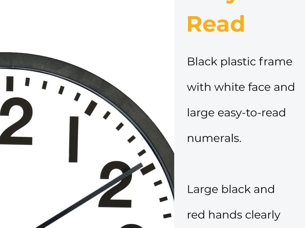 A MODERN CLOCK FOR ANY SPACE: This black wall clock is a stylish and functional addition to any room LARGE WALL CLOCK FOR EASY READABILITY: The bold hands and numbering make for an easy read at any distance, perfect as office or classroom decor BATTERY OPERATED WALL CLOCK: This clock is battery operated, making it easy to install and maintain. Requires 1 AA battery - not included BLACK, SILENT WALL CLOCK: It's smooth and silent hands make for a non-distracting wall feature, allowing you to focus on your work DURABLE CONSTRUCTION: Frame is over 1 inch thick and includes shatter-resistant raised lens