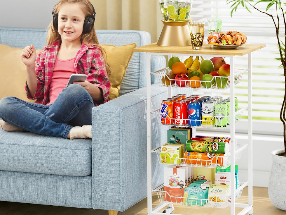 【Practical Microwave stand with pull-out baskets】Our kitchen rack features a spacious tabletop surface ideal for a microwave within 1.1 Cu Ft, with four-tiered baskets below designed to store vegetables, fruits, and kitchen staples like onions, potatoes, Tomatoes, and other pantry items. The tabletop dimensions is 20.55 X 15.43 inches. 【Multifunctional Cart】 Except for being a small microwave cart, our storage cart also can be used as kitchen cart, pantry floor organizer, fruit basket stand, small coffee cart, and snack cart. This versatile cart can be placed in various settings, including your pantry, kitchen, living room, adding both functionality and style to your space. 【Thoughtful Design】Our fruit basket stand features four 360° rotating casters, two of which can be locked to prevent sliding when stationary. Additionally, the baskets are designed with anti-pull-out tabs for easy access to items while preventing accidental being fully pulled out. 【Sturdy Wood and Metal Construction】This kitchen stand are made of durable medium density fiberboard and metal frame, which features anti-scratching, moisture-proof, and waterproof, will ensure long-lasting use. 【Easy to Assemble】Our microwave stand with storage come with clear and detailed instructions and necessary parts, you will never get stuck with the assembly jobs for this fruit basket for kitchen. After installation, the fruit holder will stand sturdy without shaking.