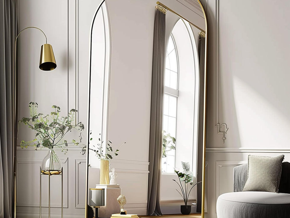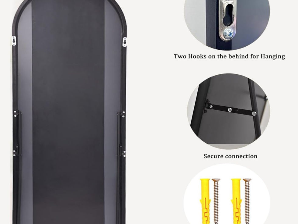 ★【ARCHED DESIGN】Modern & Contemporary 76”x34” large Full Length Mirror with metal frame is suitable for the design style of your family. Buy it in the TinyTimes store to add a lovely high quality mirror to your home. ★【EXCELLENT QUALITY】It use Aluminum Alloy frame, HD reflection effect. The back is covered with an explosion-proof membrane so that it is prevented from splashing and hurting your body when it is broken by an external force. ★【SIMPLE INSTALLATION】 Freestanding /wall-mounted/Lean on the wall 3 ways. If you want to hang it on the wall, it's very easy, just use screws and dry wall anchors, aim it at the back hanging hole and hang it. Or you can lean on the wall. ★【PERFECT FIT】: Whether it is natural light or human light, it can provide enough light to the room. 76" x 34" perfect full size to show your whole body. Expand the visual space of the room. ★【100% SATISFACTION GUARANTEE】Shop with confidence, if the mirrors is damaged when it arrives, Or you don't absolutely love our product, please contact us in time with Amazon Message and we will provide you with the best solution.