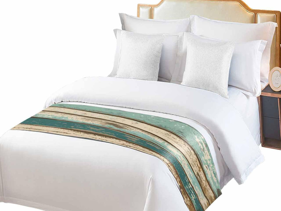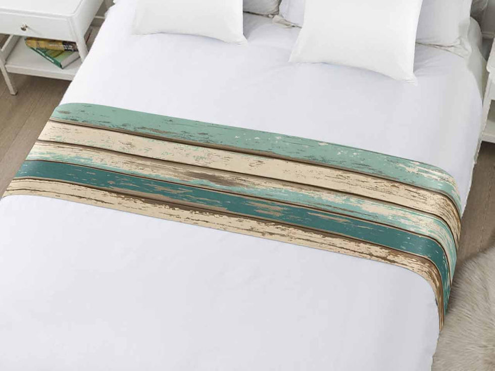 Turquoise Aqua Bed Runner for Cal. King Size Bed, Rustic Gray White