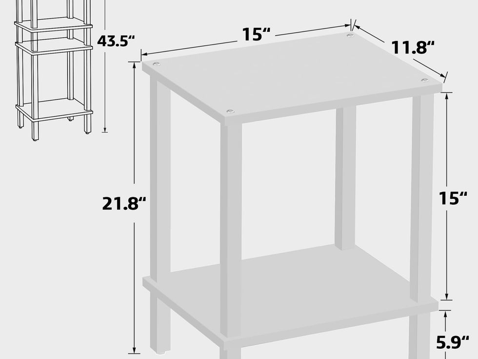 [2-tier Storage] Our end table is solid and stable enough when being placed bottle, lamp, book and magazine. Space-saving and lightweight design, easy to move and carry. [Convenient and multipurpose] The top and bottom open shelf gives you enough storage space, It can be used as a drink table, coffee table, snack tables, sofa side table, side table, entrance table, hallway table or bedside tables in bedrooms, living room. [Great for Small Spot] The 21.8 inch height will make you feel very comfortable when you pick up a cup of coffee or someting. 11.8" D x 15" W x 21.8" H, it’s a great end table for a apartment sized living room or narrow space. [Protect your Floor] We provide 4 adjustable feet for you to adjust on uneven floors. The plastic feet also prevent the metal legs from directly touching the floor. Avoid tiles, Scratches on wooden floors. [After Sale Service] Simple and Easy to Assemble! Assembly instructions are included in the package, no other special tools are required. Every end table is thoroughly and rigorously tested. TUTOTAK friendly and professional customer service will respond to you within 24 hours. If you have any questions, please feel free to contact us!