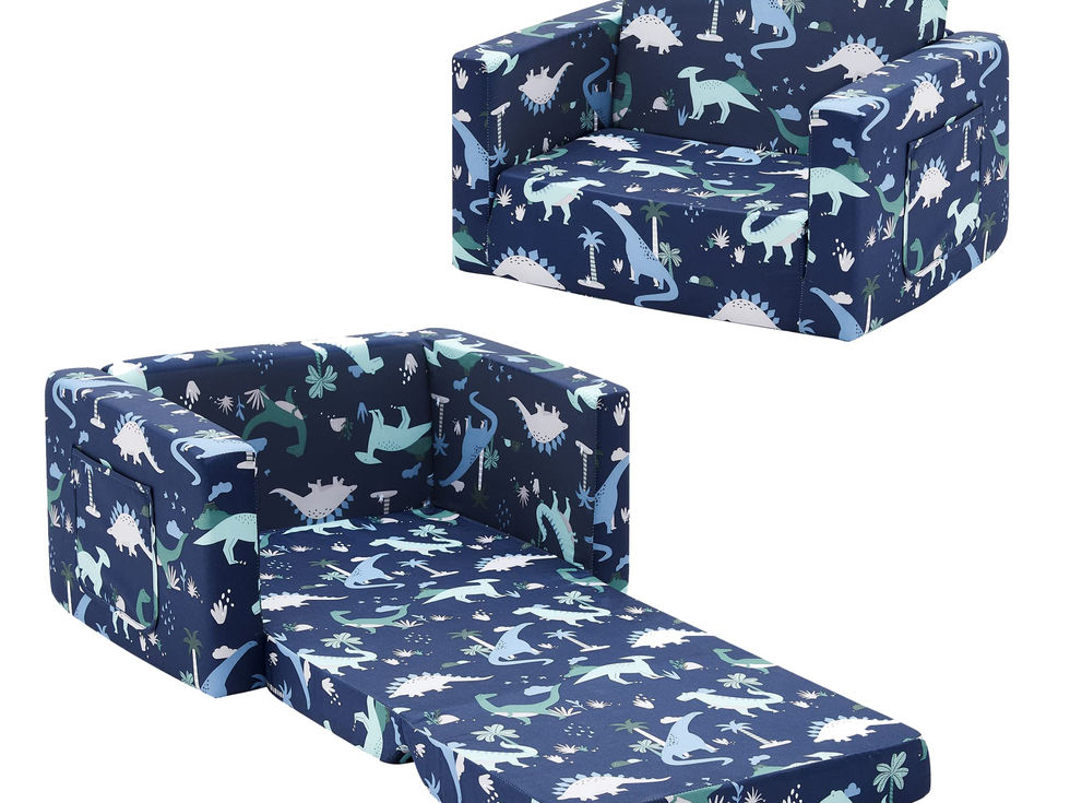 This flip-open chair converts to a lounger/sleeper. Ideal for reading, relaxing, playing, or sleeping, your child will enjoy this chair with siblings/friends Made of micro fabric, filled with high density polyurethane foam (25D) Lightweight design is easy to move; Additional side pocket for books, blankets, and toys Removable machine-washable slipcover that childproof zips off for cleaning Meets CPSIA and FHSA safety standards.
