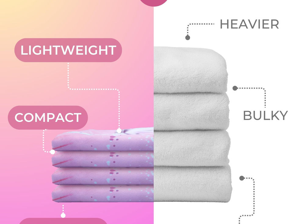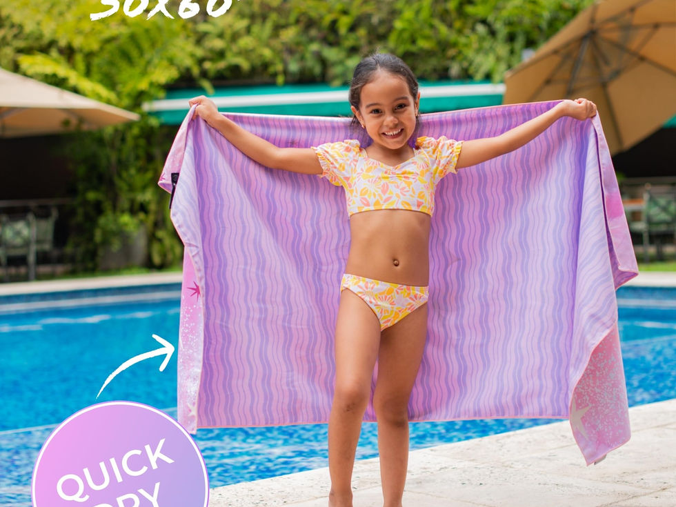 POOL & BEACH TOWEL FOR KIDS : Our quick-dry towel is perfect for drying off after pool or ocean dips. Doubles as a great swim towel and comes in a matching pouch, making it convenient for travel, summer camp, or pool days. THIN & LIGHTWEIGHT: Unlike bulky cotton towels, our microfiber towel is slim and lightweight. When folded, it becomes incredibly compact, effortlessly fitting into any backpack or luggage without taking up valuable space NOT YOUR NORMAL TOWEL: This is not your regular towel. It is a thin, lightweight design crafted to fulfill other purposes such as fast drying, taking up minimal space, and being sand-free. STUNNING UNICORN TOWEL: Featuring a captivating unicorn in vibrant pink tones on one side, and a complementary solid color on the other, this unicorn towel is an enchanting choice for girls, toddlers, and kids alike. SAND-FREE – Leave sand for sandcastles. Microfiber travel beach towel repel sand, keeping your bag, car, and home clean. Just shake it, and sand slides right off.