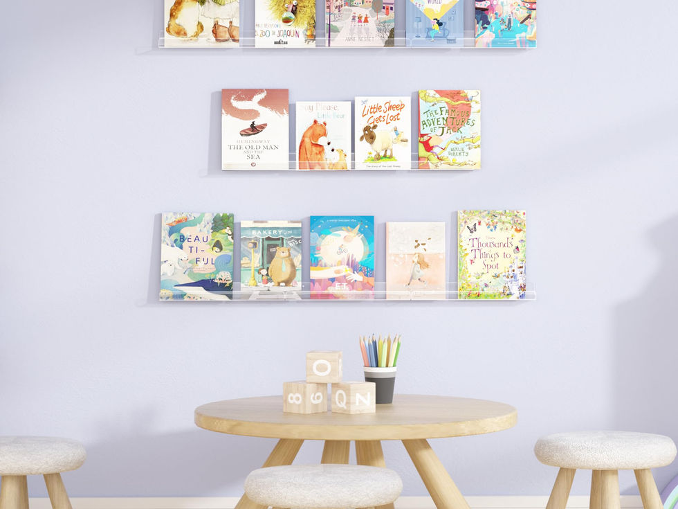 【Acrylic Bookshelf】These floating wall shelves can organize and display your child's favorite books, which create a reading corner for them and inspire them a genuine love for reading. The clear appearance makes it easier for kids to choose the book they like. 【Versatile Floating Shelves】Acrylic shelves are not only for kids’ book, but also a good choice for displaying vinyl records, album covers, magazine, basketball cards, picture frames, comic books, nail polish, perfume and more. The lip on front prevents your items from falling off. 【Unique Wall Decor】Everything will look beautiful and organized with these clear shelves, allowing you to utilize wall space more efficiently. The simple and stylish design makes them fit for any decor style. Add a modern touch to your room. 【Easy to Install】Nursery shelves have pre-drilled holes, detailed instructions and all necessary mounting hardware, which makes installation simple. Within minutes, you can get a charming reading corner for your child. 【Premium Material】Crafted from high-quality acrylic, these floating shelves for baby books are sturdy, durable and easy to clean, which offer the efficient storage solution for your home. Size: 12x1.7x1.7 in.