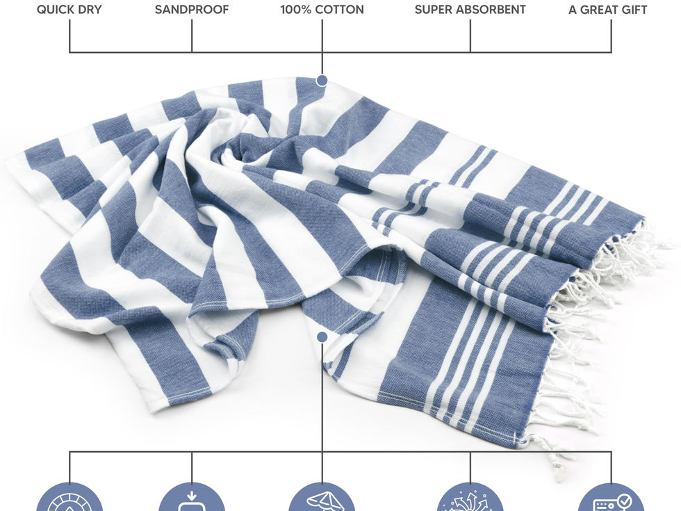 Pack of 4 - The set of 4 Turkish Stripe Beach Towels measuring 40 x 72 inches each. They are super convenient to use and provide maximum absorbency. Luxurious Quality - Crafted with 100% premium cotton fabric, the large beach towel is designed to soak up more water and is quick to dry. Our lavish towels will leave you with a fresh feeling all day. Stylish, Soft & Compact - Streamline your summer with our quick dry beach towels, as they make an elegant addition to any setting. The towels are acutely soft in touch, super handy and portable. Immensly Practical - The sand free beach towel is highly functional, rolls up neatly to fit in your bag or closet. Perfectly suitable for bathroom use, beach, spa, pool, gym, yoga, travel, camping and other versatile preferences. Care Guide - It is recommended to machine wash the towel before use and line dry for best results.