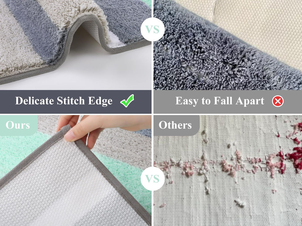 Soft Bathroom Rug: The bath rugs set is made of microfiber materials. The thickness is 0.6 inches(15mm), which is soft and can provide enough support for you. Every time you walk on the shower mat barefoot, the soft fabric can soothe your tired feet Absorbent Bath Mat: The non slip bath floor mats set has superb good water absorption. And the bath mat set for bathroom uses non-slip TPR as the bottom material. It can improve friction on various floors including wooden floors and ceramic tiles Washable Bath Mat: You can toss bathroom rugs into the washing machine, wash them in cold water and hang them to dry or air dry. And our dozens of machine washing tests show that the bath carpet can withstand frequent machine washing without deformation Functional:20X24 inches+20X32 inches+18X26 inches bathroom mats use the stylish multi-color stripe design, which can be well matched with towels and other bathroom decors. Perfect for various occasions such as bathroom, toilet, kitchen, bedroom, entrances, pet house, and so on Warning: Before placing the bathroom rugs and mats set on the floor, make sure that the ground where it will be placed should be clean, flat and dry. If there is water or dust under the absorbent bath mat runner, it may cause slippage