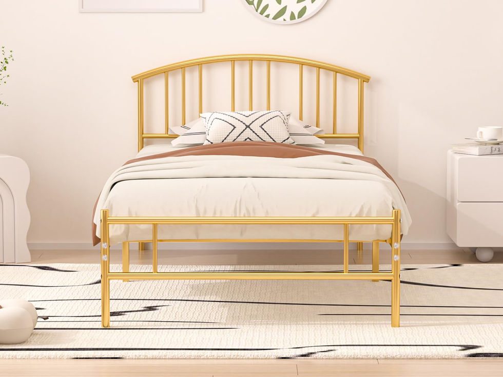 VECELO 2 Set 14 inch Twin Bed Frame Gold Beds Metal Platform Mattress