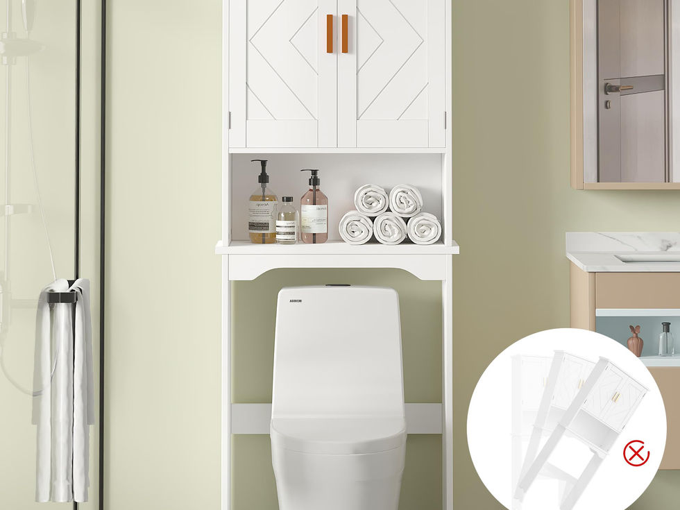 Space-saving Design: Over the toilet storage cabinet makes full use of the wall space, keep your bathroom organized without taking up too much place. The anti-toppling fitting for security and stability. Flexible Adjustable Shelf: Bathroom storage cabinet shelf behind the door can be adjusted to 3 height positions. Floor mount bathroom cabinet provides ample space for items of different size. Classic and Exquisite: Our bathroom cabinet features enclosed shelf with door and one open shelf. Open shelf for you to easily access your frequently used toiletries. High-quality Material: Sleek bathroom organizer made of high-quality MDF board, which is durable. The surface of the wall cabinet is using a painted process that is waterproof, suitable for bathroom. Effortless Assembly: Above toilet storage cabinet comes with clear assembly instructions and all necessary tools, with components clearly labeled for quick assembly to get a new cabinet.