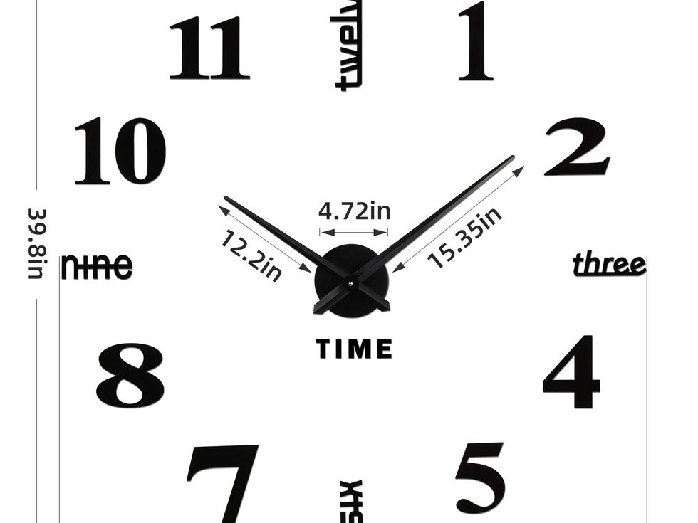 đăWall Clocks For Living Room Decoră:VREAONE clock is a modern frameless wall clock, decor wall clock, ideal for decorating living rooms, bedrooms, restaurants, offices, hotels. Equipped with exquisite packaging, it is a wonderful gift for family and friends. đăDIY Clock, Easy to Assembleă:DIY wall clock with an adjustable diameter of at least 60 cm, maximum 120 cm. Complete accessories,Easy to install (please follow the instructions). Enjoy the happy time of DIY with your family. đăPrecise Silent MovementăLarge Wall Clock ,Uses Youngtown 12888 Movement, Powered By Aa Batteries, Ce Certified, Which Can Effectively Reduce Energy Consumption And Prolong Service Life. Farmhouse Wall Clock Quiet And Silent When Operating. đăEnvironmental Protection, Durable MaterialăThe numbers are made of camouflage EVA foam,which is wear-resistant, environmentally friendly, not easily deformed, and easy to install and remove. Aluminum hands can read more accurate time. đăOur Promise to You ă We are confident in the quality of our diy clocks and provide friendly and hassle free customer care, if for any reason you are not 100% delighted with your new 3D clock then get in touch and we will help.