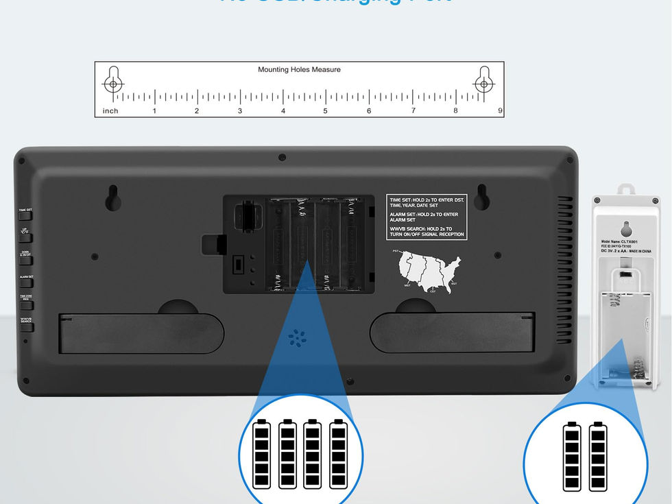 Accurate atomic clock – Never needs setting. The clock has a built-in receiver that automatically synchronizes itself with the WWVB radio broadcast by the US Government’s National Institute (NIST) in Fort Collins, Colorado. Atomic clock with indoor outdoor temperature – The indoor temperature display relies on a built-in high precision indoor temperature sensor. The outdoor temperature displays through the wireless outdoor sensor which collect the outdoor temperature information and then send it to clock, the distance of them should be within 330 feet (100m). Large atomic wall clock with full information – The clock has a large display with temperature, date, day and time. The LCD screen measures 12.8x4.9 inch with time numbers 8.4x3.1 inch, easy to read from any angle in the room. The seconds display will also show you a more accurate time. Digital atomic wall clock large display battery operated – Both of the atomic clock and wireless outdoor sensor are supported by AA batteries. (Clock needs 4xAA battery, outdoor sensor needs 2xAA battery, battery not included). When the battery is about to run out, there will be a low battery indicator on the screen. Atomic clock for wall or desk – WallarGe atomic clock comes with a mounting ruler which is used for wall mount drilling so there is no need to measure the holes, very easy to operate. It also has a fold-out stand at the back to be used as a desk clock. The large digital wall clock can be used for living room, classroom, office, gym, hospital, nursing home or any other place.