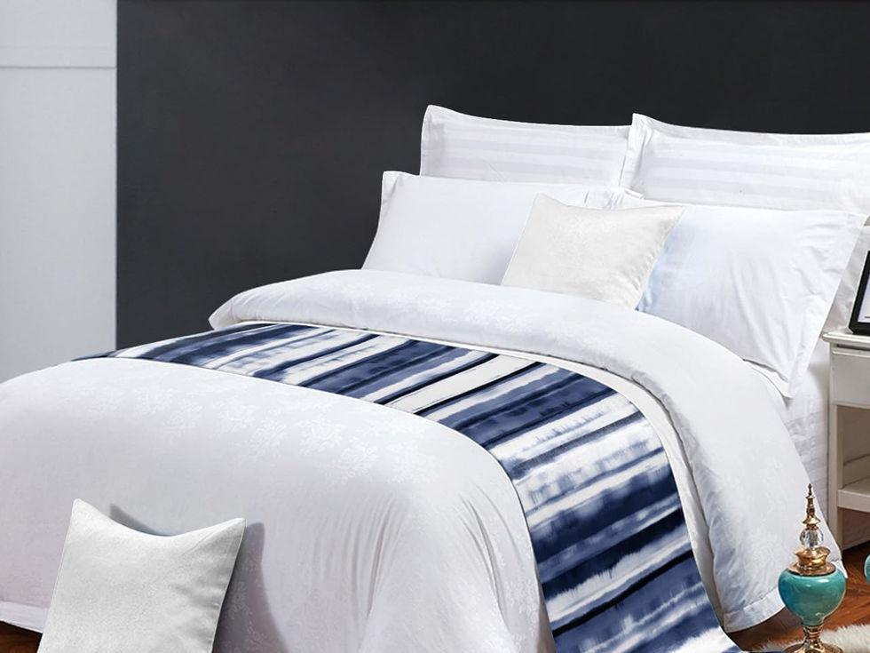 Watercolor Blue Stripe Bed Runner Scarf King Size,Luxury Bed Throw