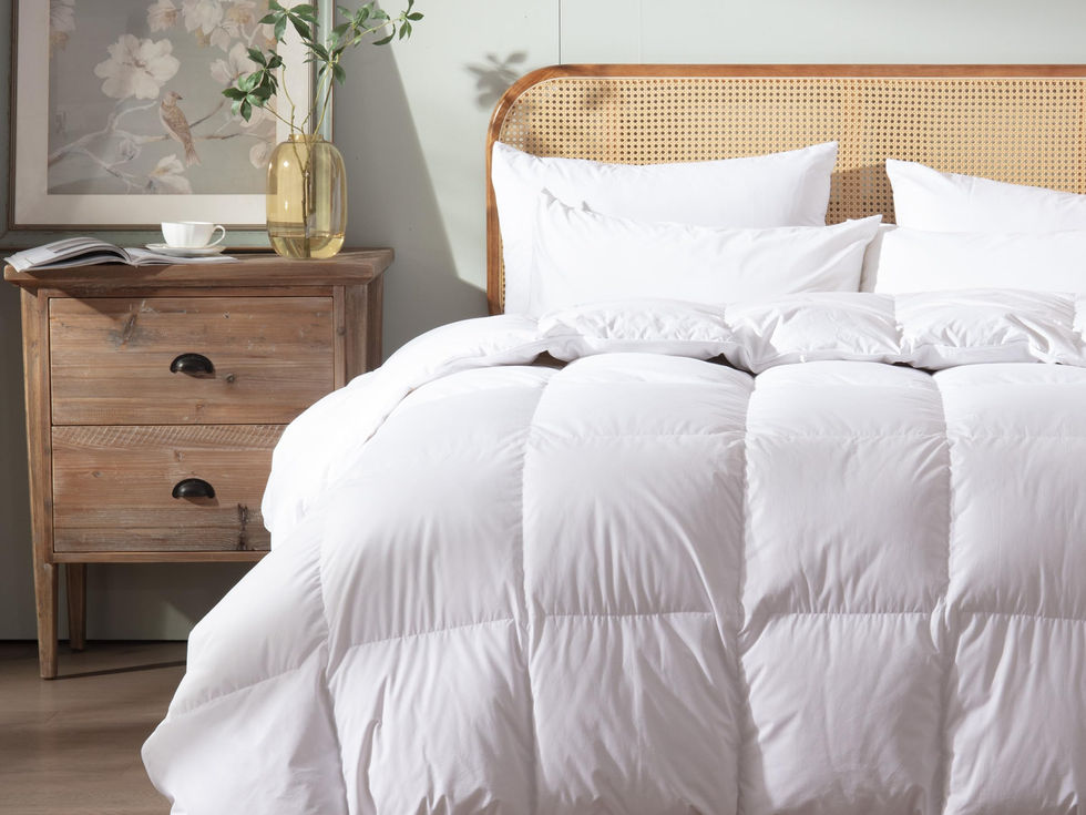【Premium Dowm Comforter】Our down comforter is fluffy and comfy.Boasting top down and feather blend,possess OEKO-TEX Standard 100 certification,please rest assured to use it.Duvet insert provides exceptional softness,warmth,and the perfect weight for a restful night's sleep 【100% Organic Cotton】Comforter cover is made of 100% Organic Cotton,safety certified by Global Organic Textile Standard,ultra-soft,breathable and skin-friendly.Premium material guarantees high cleanness,odorless and comfy duvet insert.Our down comforter fabric is organic and does not use more chemicals.The fabric remains in its original state,but after multiple washes,it becomes softer 【Extreme Craftsmanship】down quilt design of box-stitch quilting keeps the filling in place and avoid any shift during the night ensuring a stable sleep. down comforter consideration of sewing corner tabs are very convenient for attaching a duvet cover and anchor duvet cover and protect down blanket from shifting 【Perfect Design】White comforter Full/Queen size is 90x90inches,65oz Fill weight-a nice weight for year-round comfort.All of our white blankets queen size follow the Responsible Down Standard (RDS),so you can rest assured that all our materials are ethically sourced 【Easy Care】Our duvet insert is machine washable and dryable,it easy to keep clean and fresh. down comforter are vacuum packed.After receiving the down comforter,remove it from the packaging,shake out the duvet insert,gently fluff it,and wait for a few hours for self fluffly.Alternatively,roll in the dryer at low temperature for 15 minutes to obtain a fluffy down quilt.If you have any questions,you can contact us and we will help you solve them satisfactorily